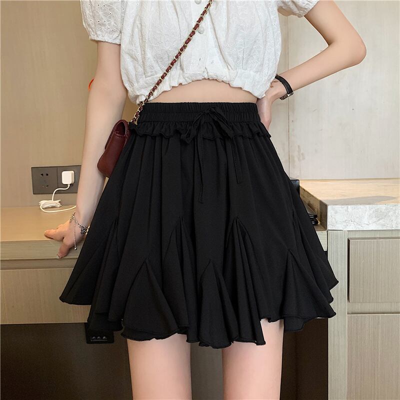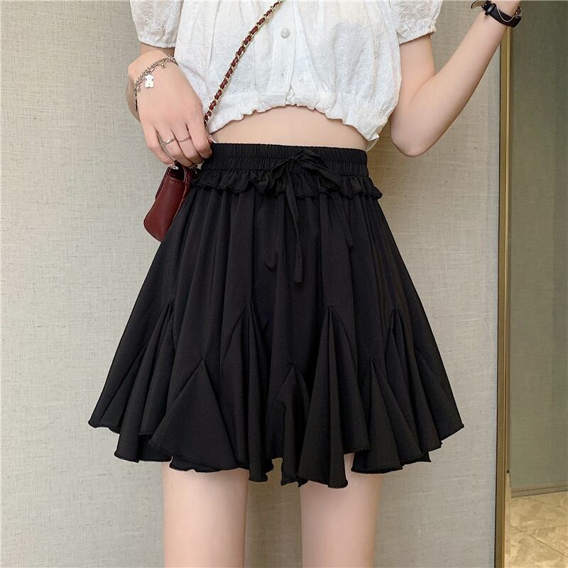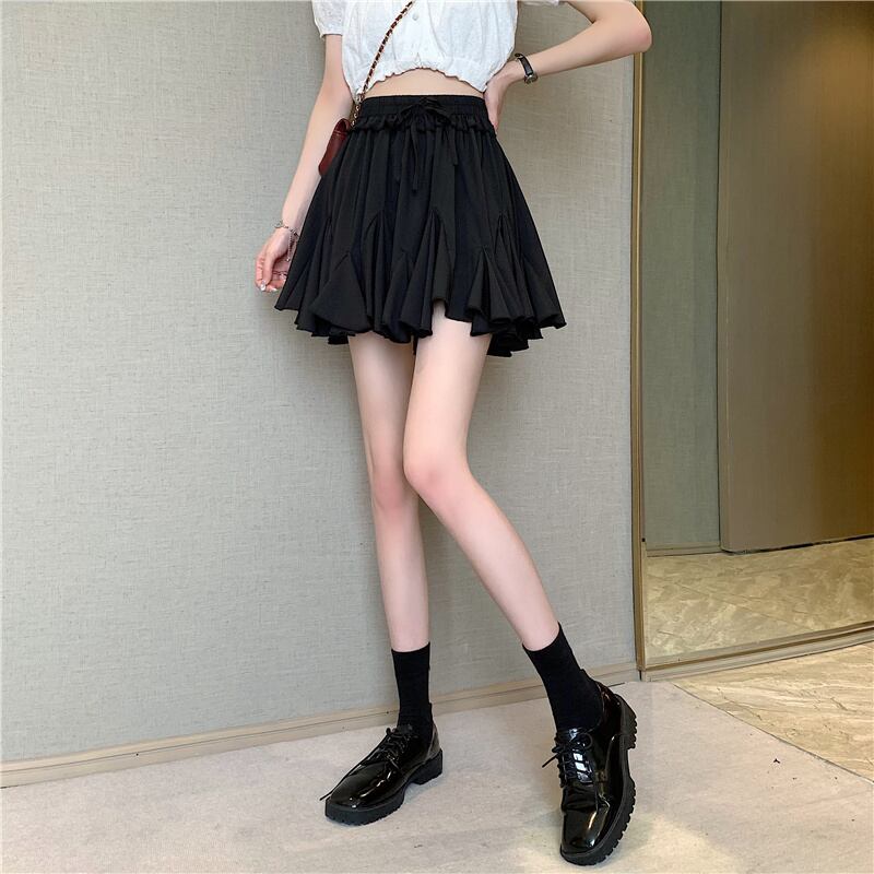 ブラックスカート レディースハイウェストウェストAライン夏服スタイルショートトレンド ふわふわ 夏物 ウエスト SYJ42968515667