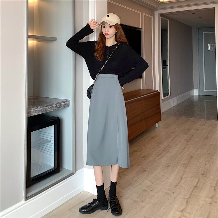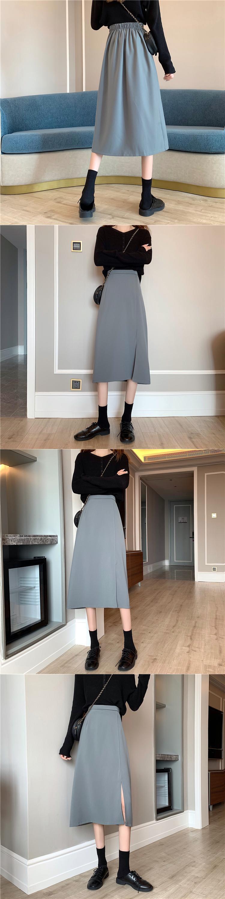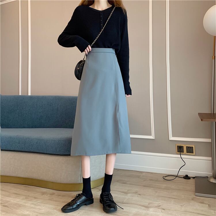スカート レディーススプリングブラックハイウェストウェストAライン薄手 春物 ウエスト ミドル丈 YY59011722268