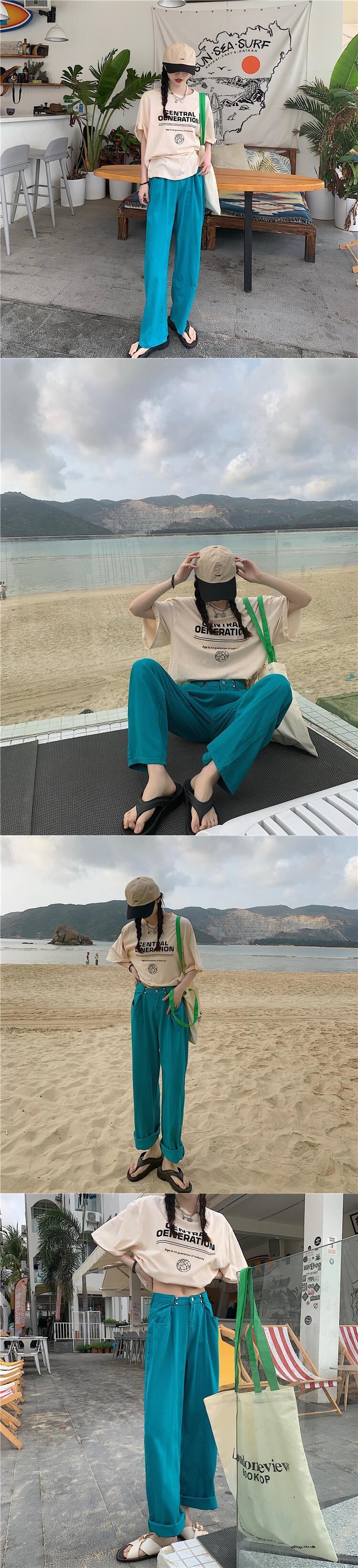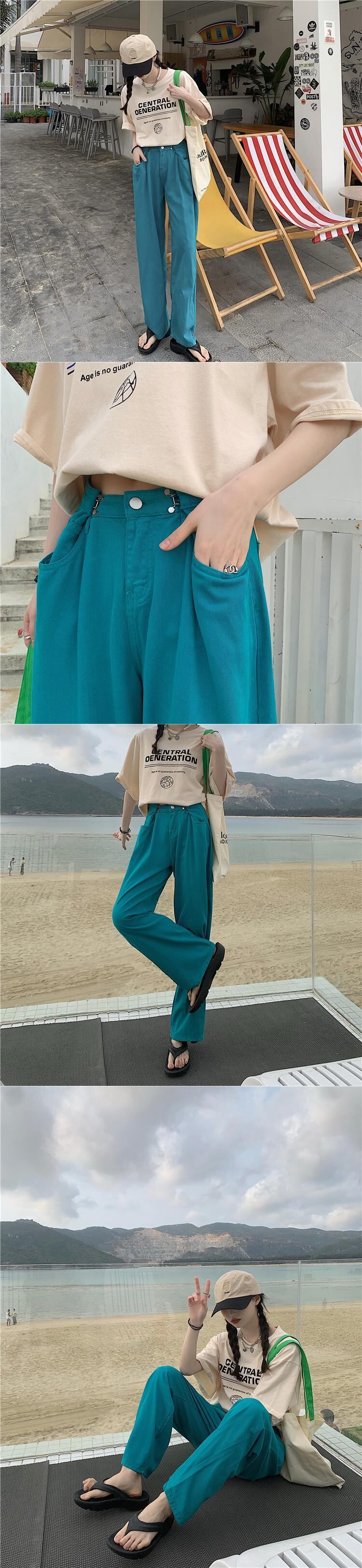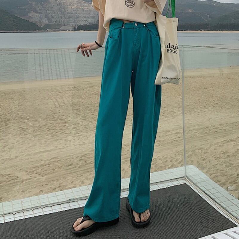 ワイドレッグパンツ ジーンズ レディース夏服ウェストルーズ薄手 夏物 ワイドパンツ ウエスト YY75350670673