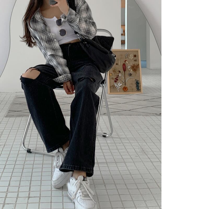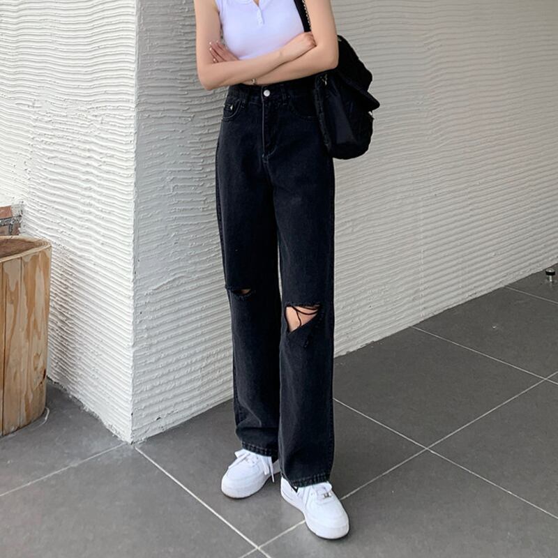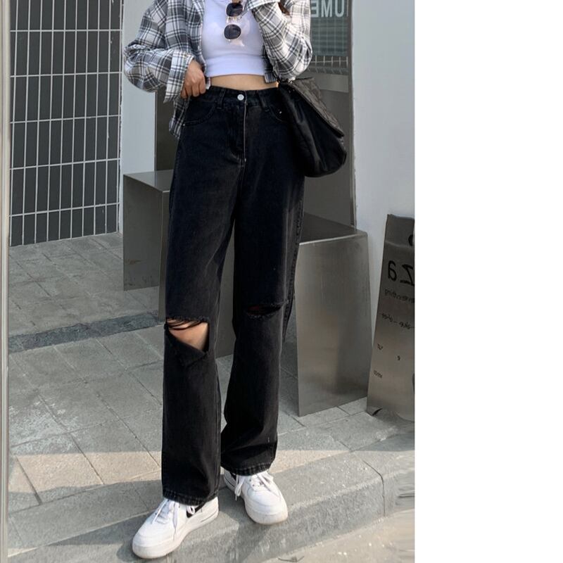 ブラックジーンズ ルーズパンツ スプリング秋物ハイウェスト薄手 春物 オータム ウエスト SYJ9460966773
