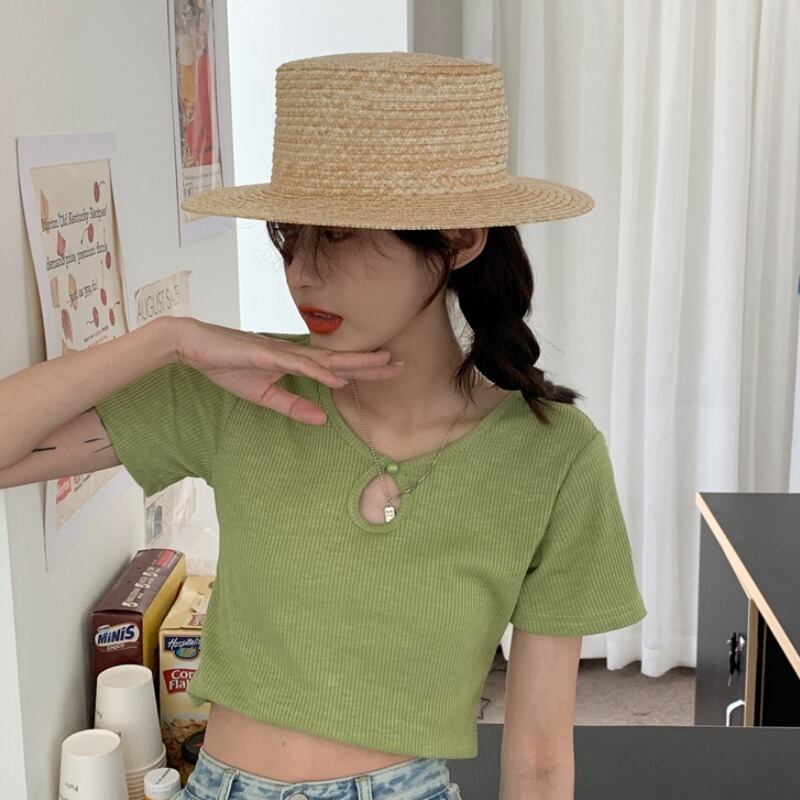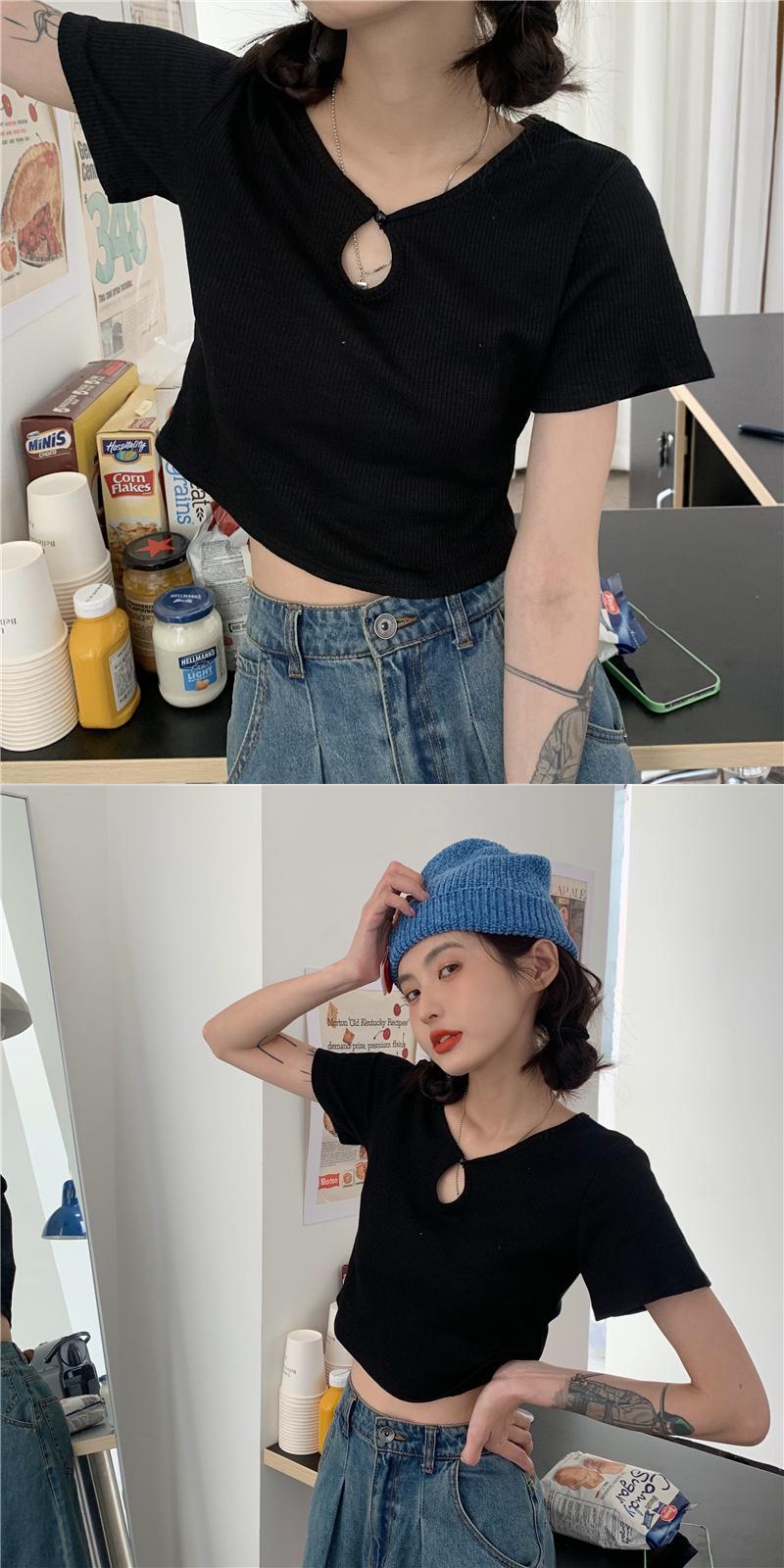 Tシャツショートトレンド夏服スリムハイウェストウェストクロップドトップス ピンク 夏物 ウエスト YY27742504923