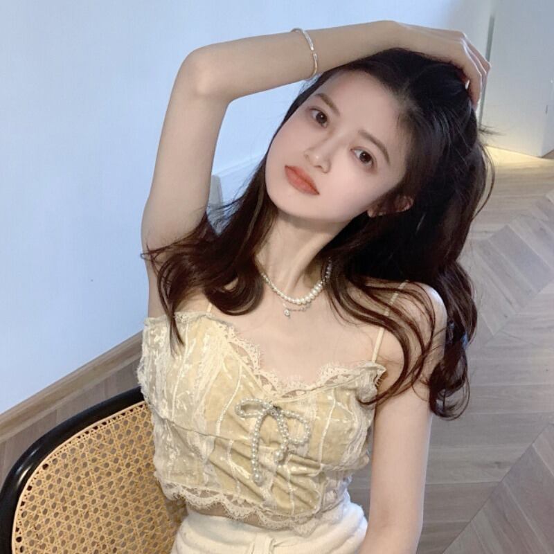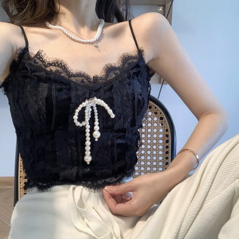 レースレディース夏服ブラックリボンショートシャツ トップス 夏物 YY14811489903