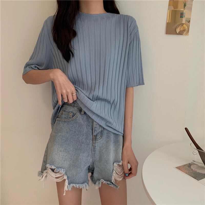 ホワイトTシャツレディース夏服ルーズ韓国ファッションニットトレンド 夏物 SYJ88859853450