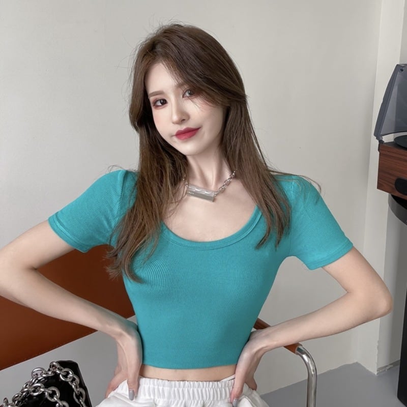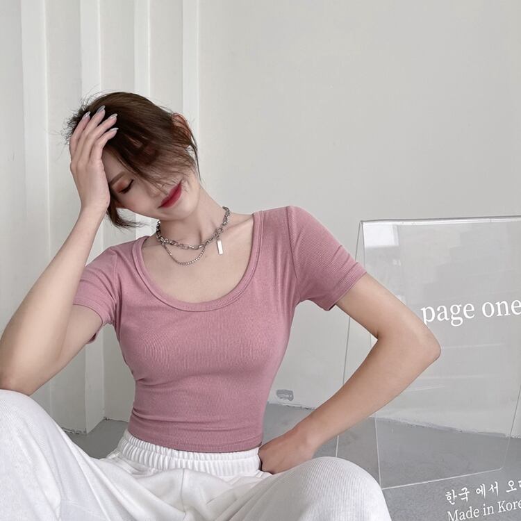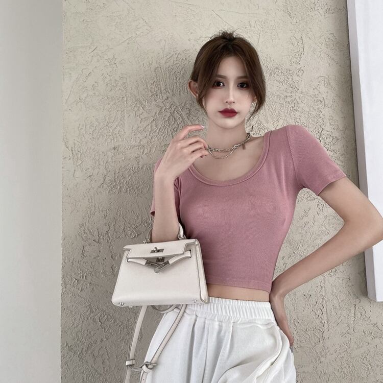 カラーショートTシャツ夏服韓国ファッショントレンドスリムトップス 夏物 スタイル YY28303546025