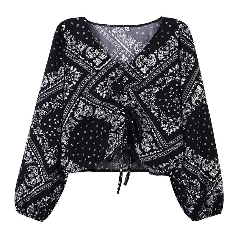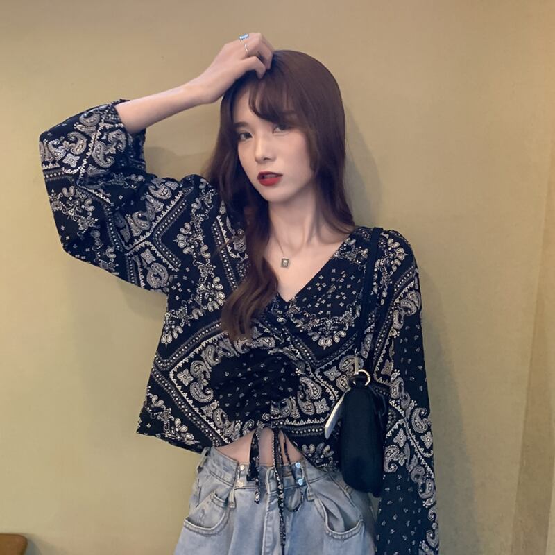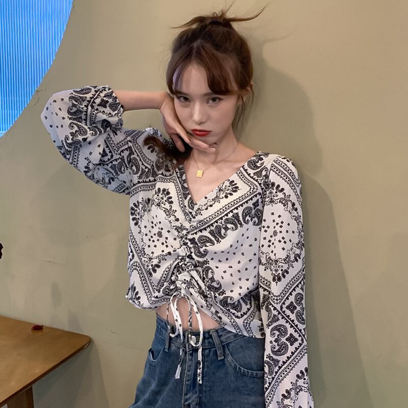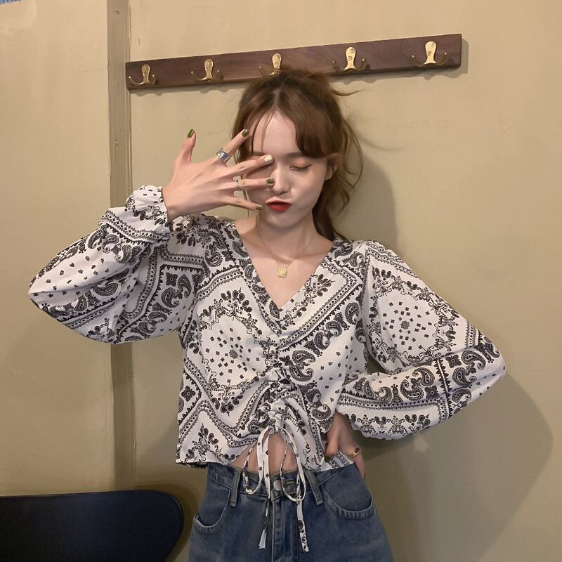 スタンダードシャツ レディーススプリング秋物Vネックトップス レトロ 春物 オータム SYJ18225289742