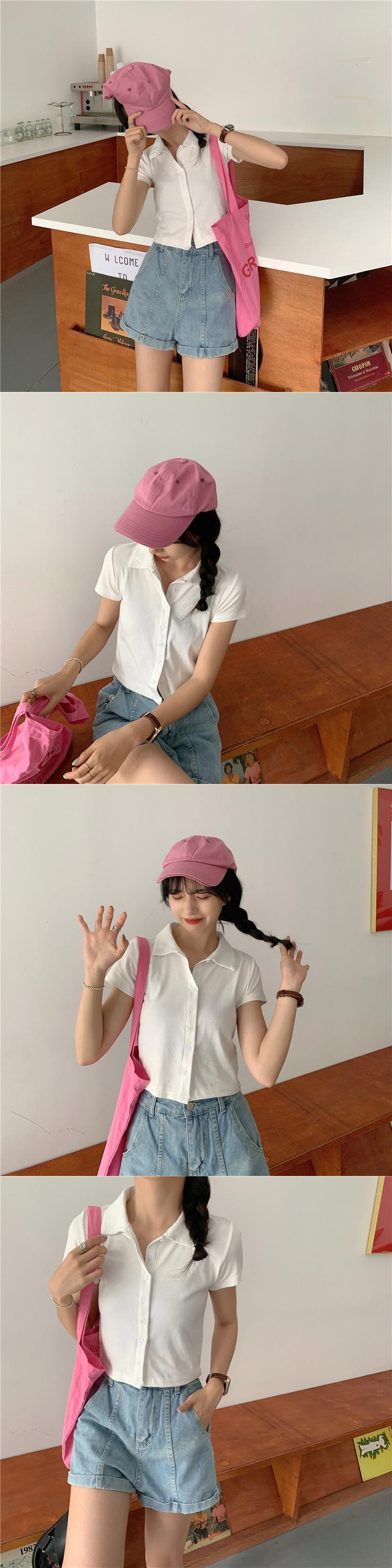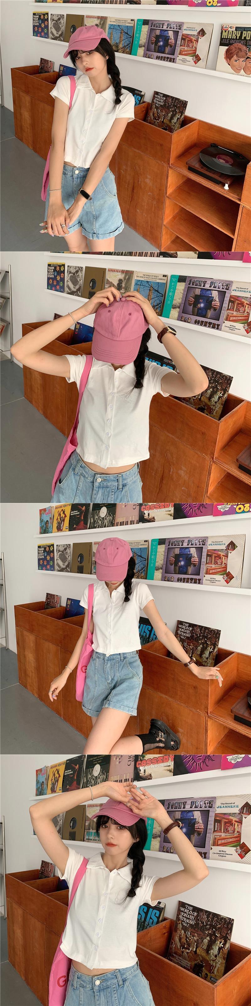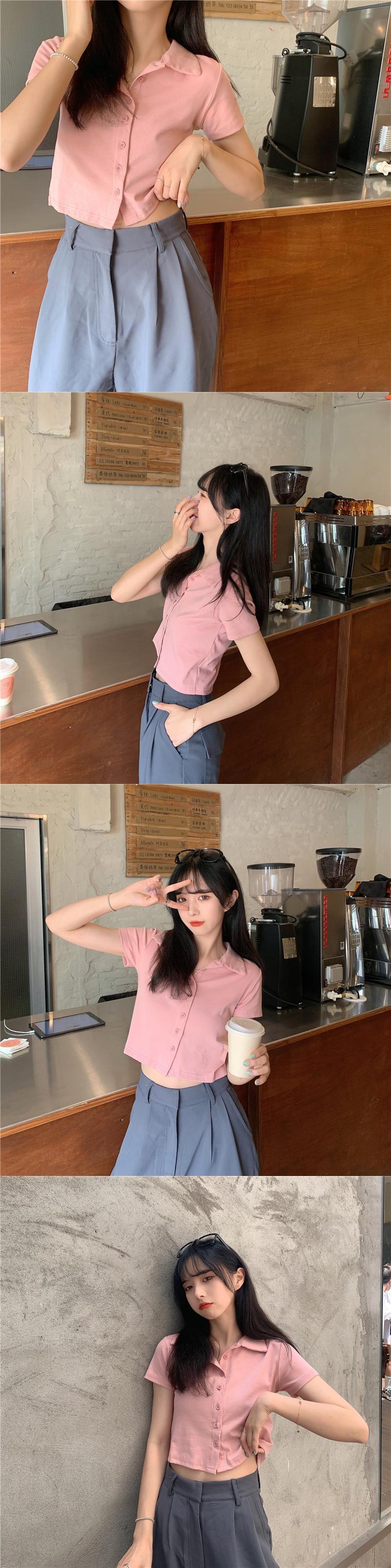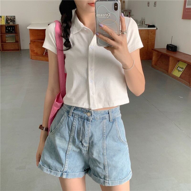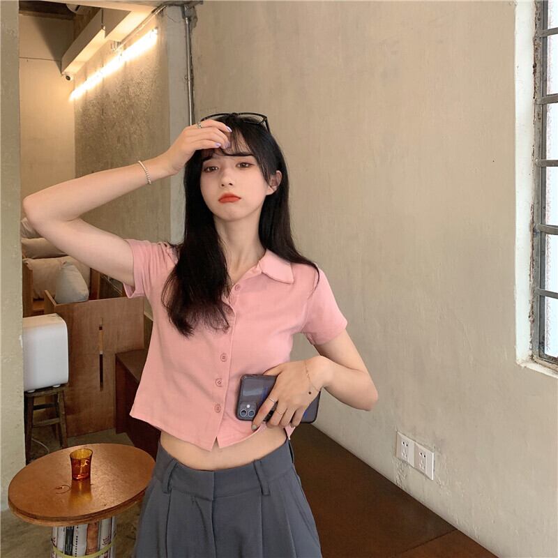 夏服韓国ファッションカジュアルショートスタンダードカラーホワイトシャツ レディース レトロ 夏物 スタイル YY84442668035