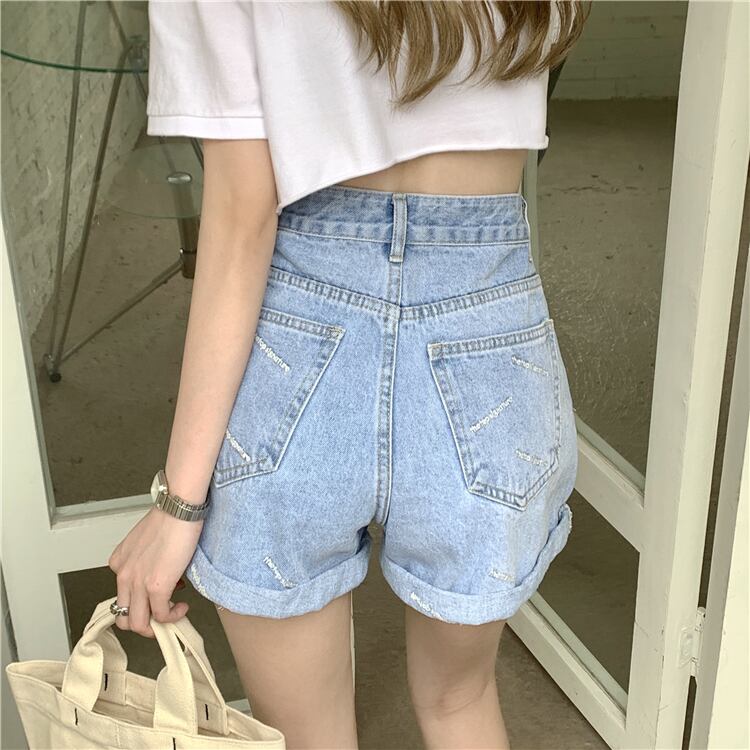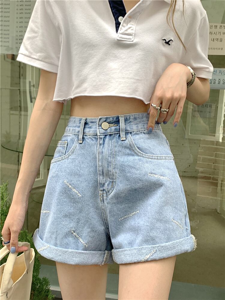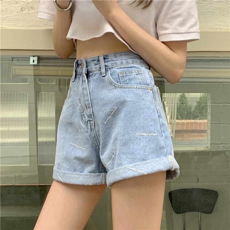 ハイウェストショーツ レディーストレンド夏服ブルーパンツ レッド 刺繍 夏物 ウエスト YY8942844959