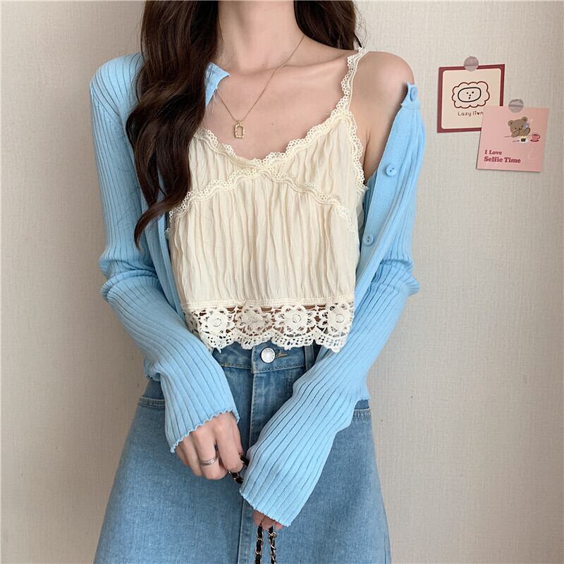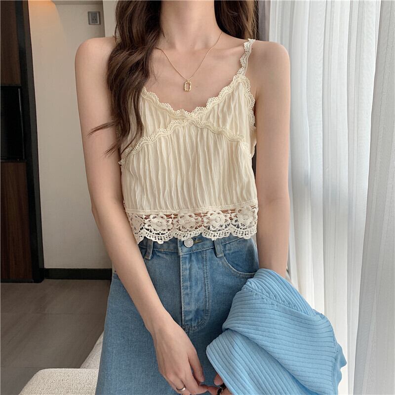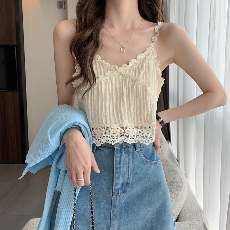 レースレディース夏服ノースリーブショートトップス 夏物 SYJ97740989436