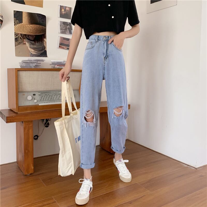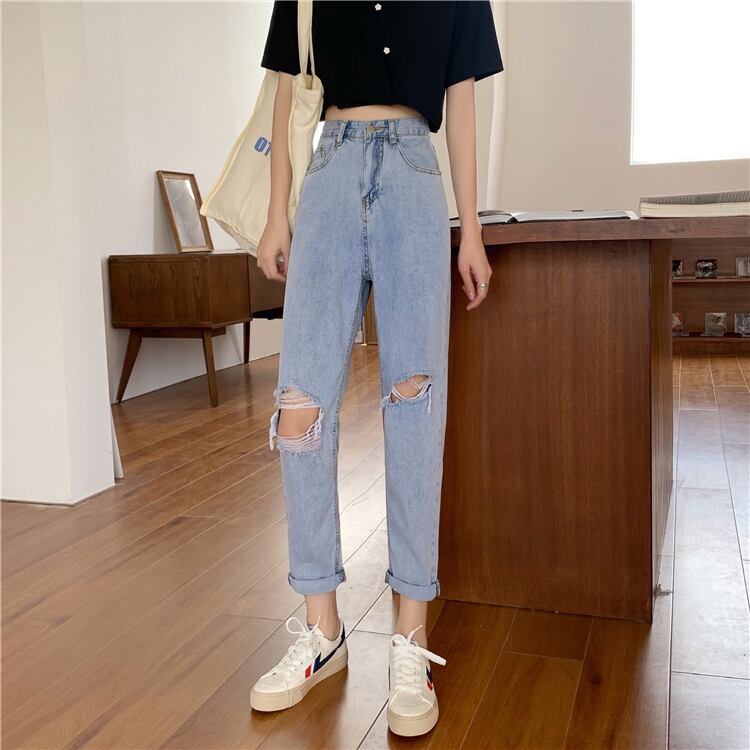 ジーンズ 夏服ハイウェスト薄手ルーズパンツ 夏物 ウエスト YY9101124536