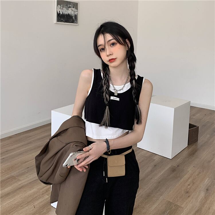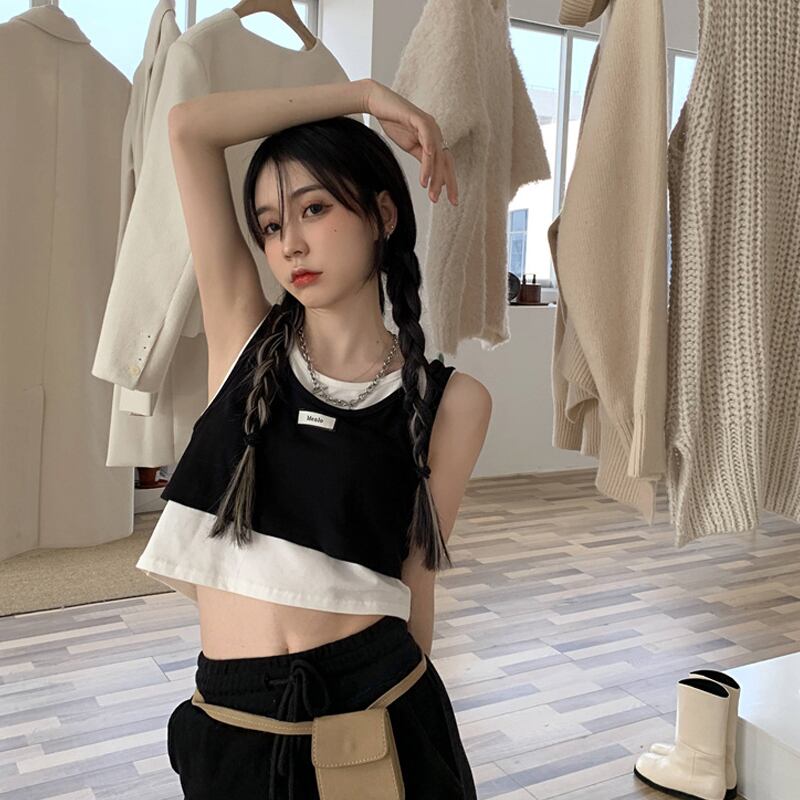 ブラック夏服スタイルショートノースリーブトップス 半袖 ハーフスリーブ 夏物 SPM56461549476