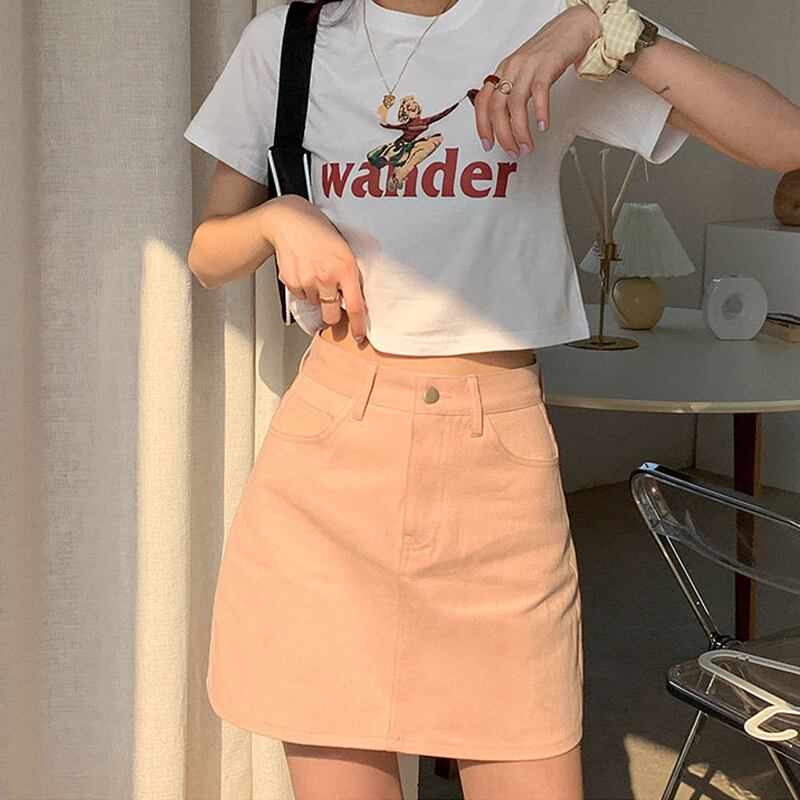 イエロースカート レディース夏服ハイウェストウェスト薄手Aラインスプリング秋物ショートトレンド 春物 夏物 オータム ウエスト SYJ71866450117