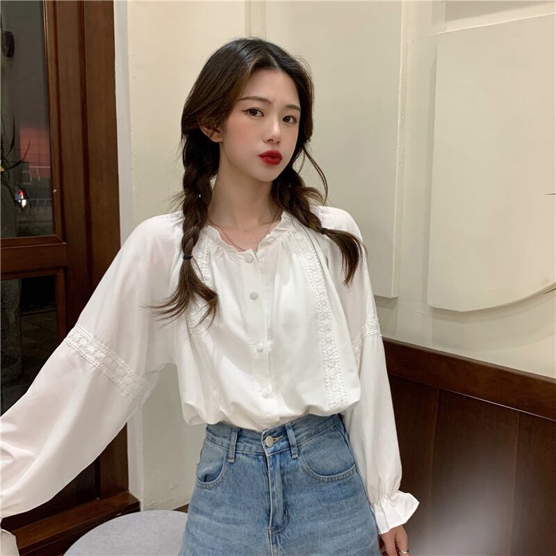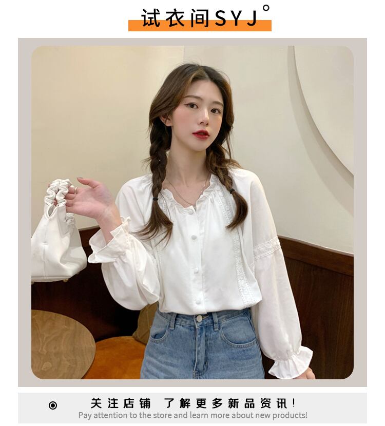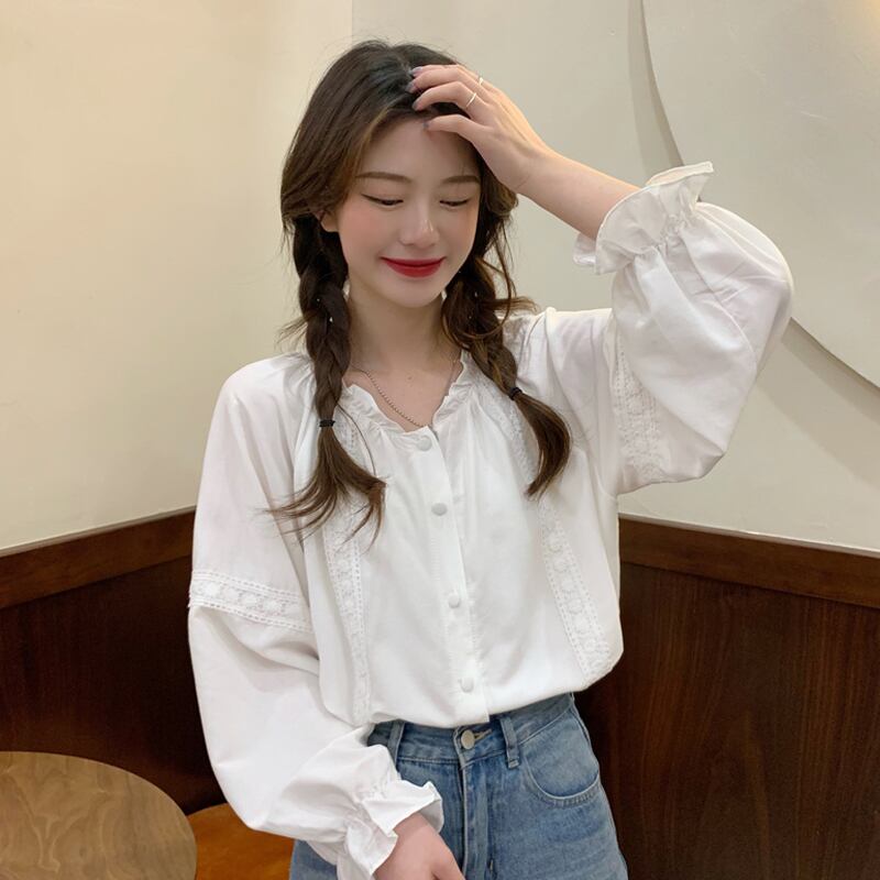 ホワイトシャツ レディーススプリング秋物Vネックトップス ロング 春物 オータム 長袖 SYJ52459233118