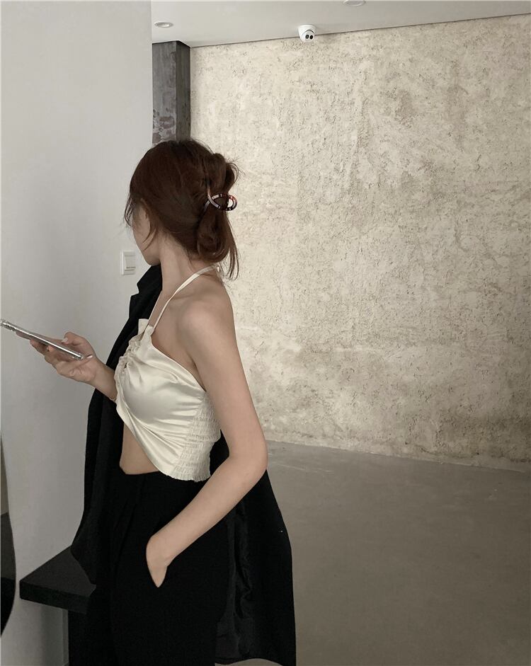 ノースリーブVネックスプリング夏服ホワイトホルターショートゆったりシャツ 春物 夏物 YY78034984510