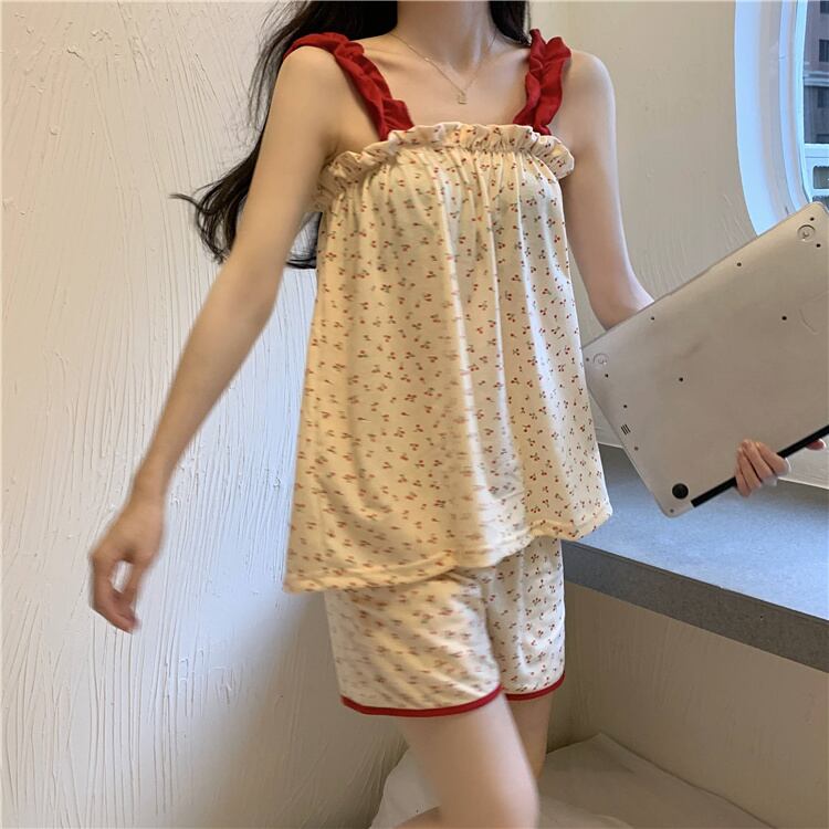 夏服薄手プリント柄ノースリーブトップス ルーズショーツ 夏物 YY53114942904