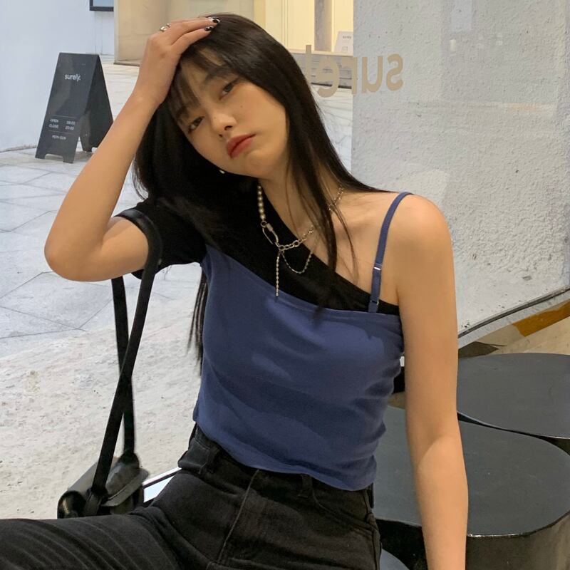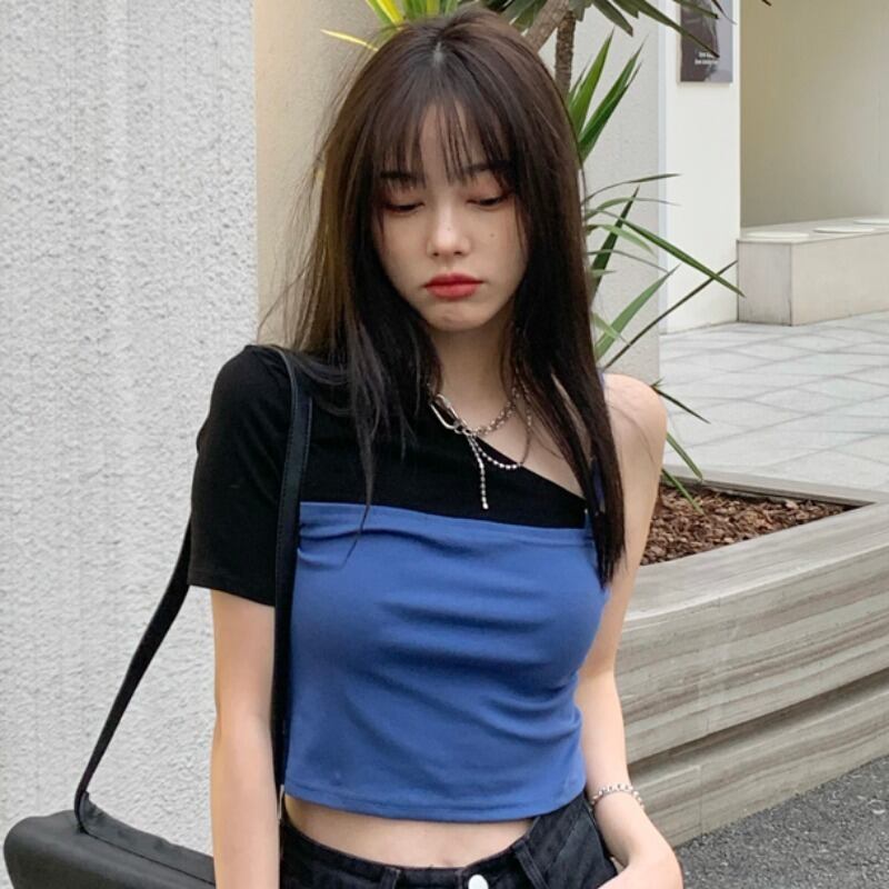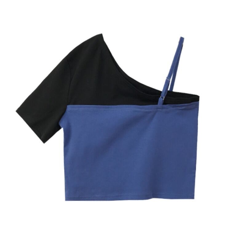 カラーTシャツレディース夏服ブラックショートトップス 夏物 オフショルダー YY38725910526