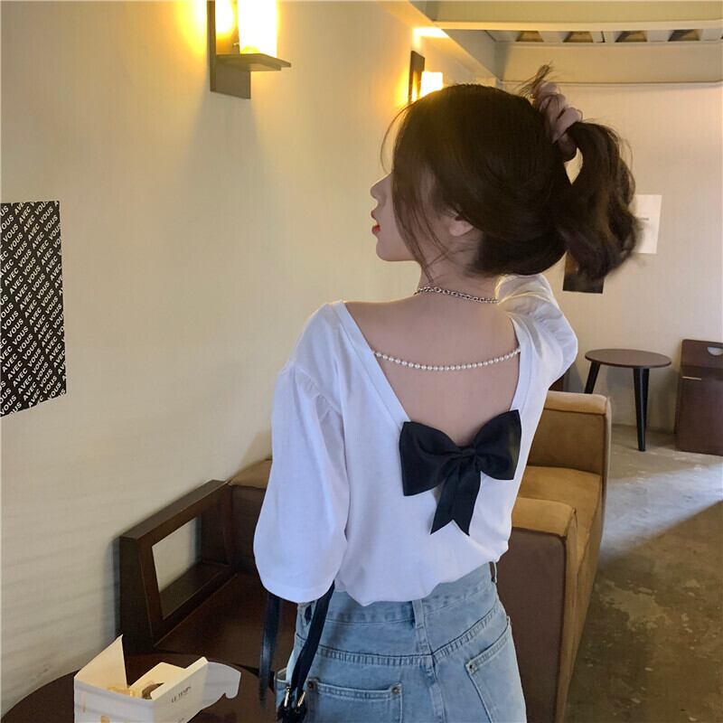 ホワイトTシャツ夏服バックレストレンド 大人ガーリー スウィート キュート カジュアル 夏物 SYJ97606244564