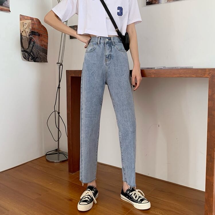 ジーンズ 夏服薄手韓国ファッションハイウェストスリムパンツ ルーズ 夏物 スタイル ウエスト YY1826286805