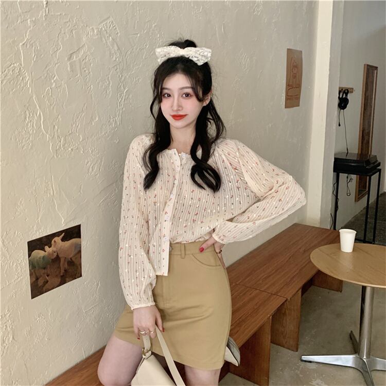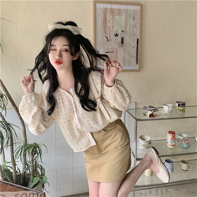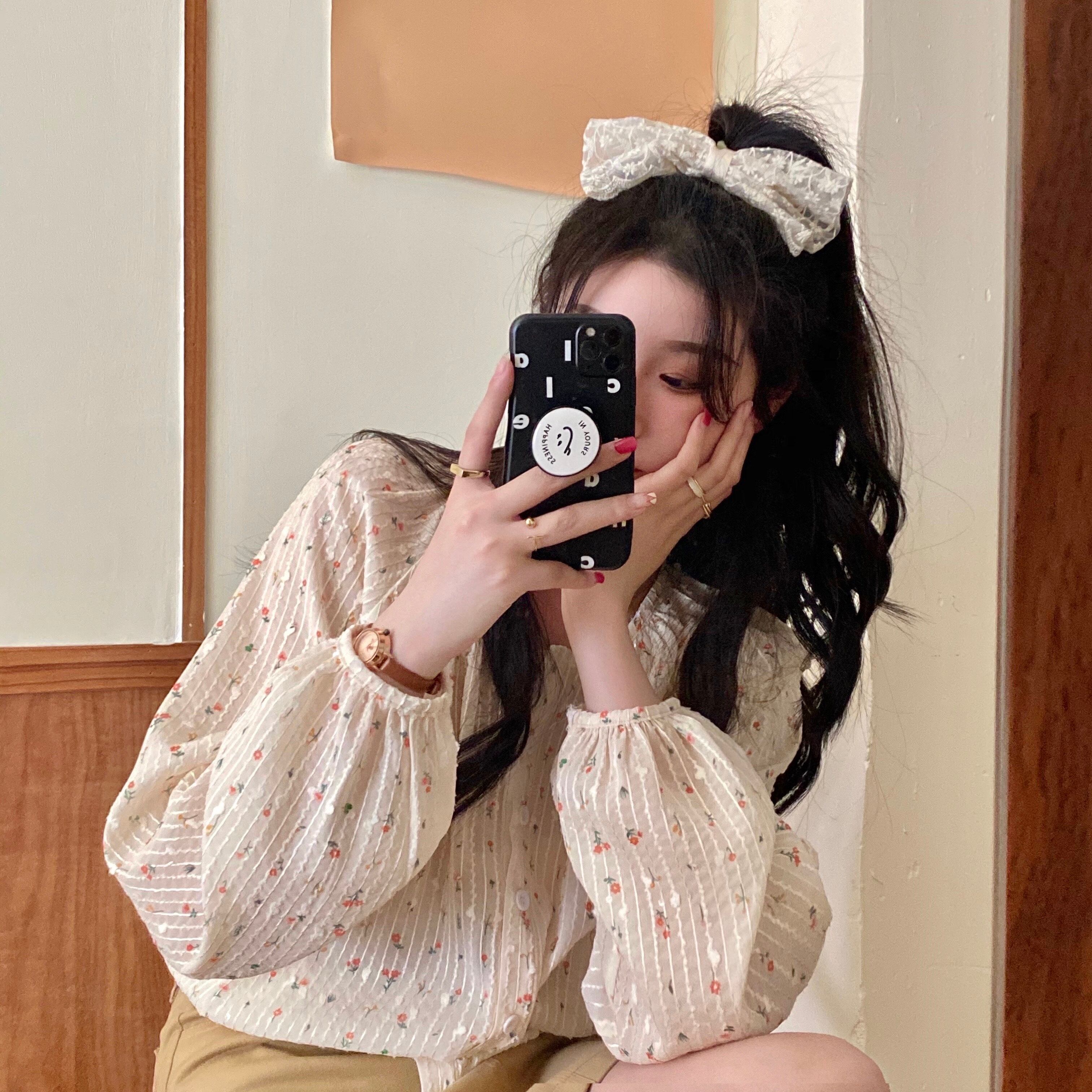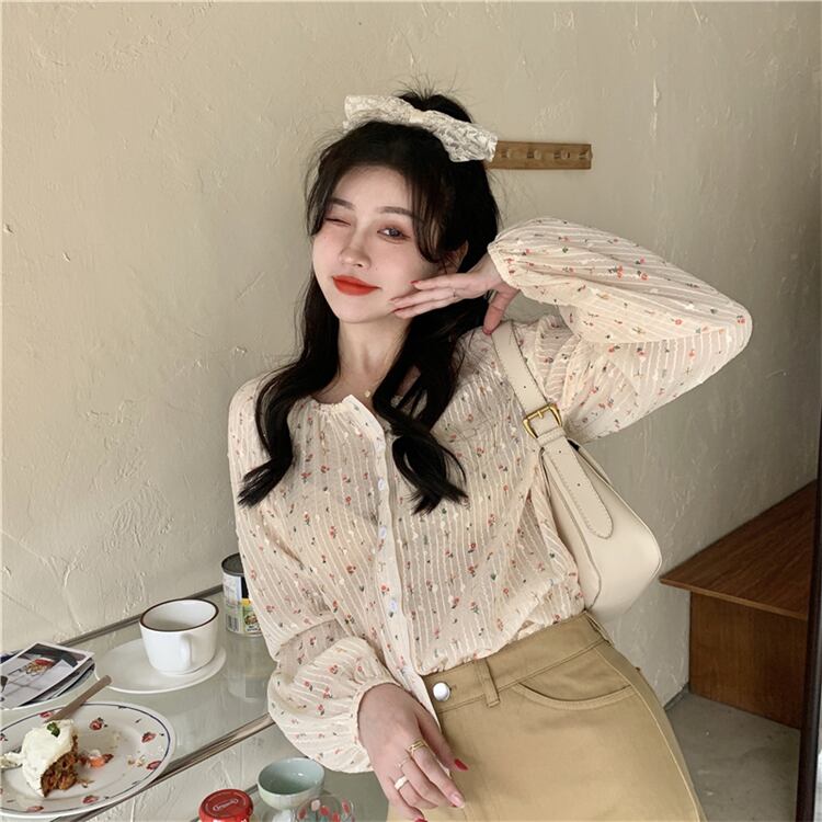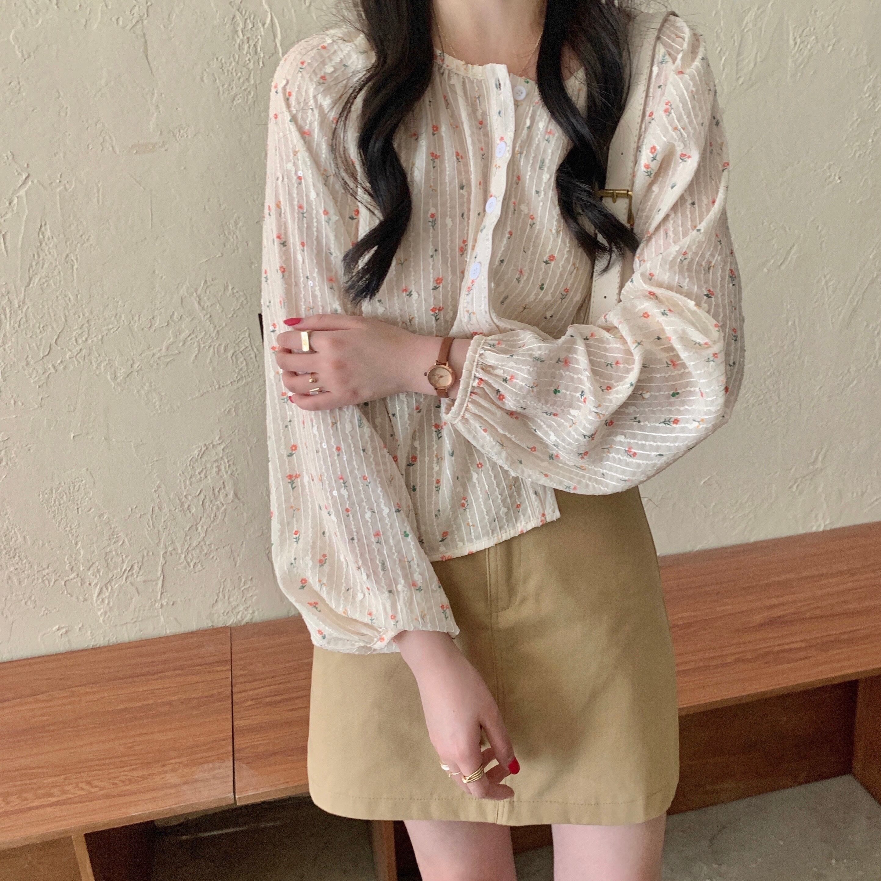 フローラルシフォンシャツ スプリング韓国ファッション薄手 ロング 春物 花柄 スタイル 長袖 YY15579265568