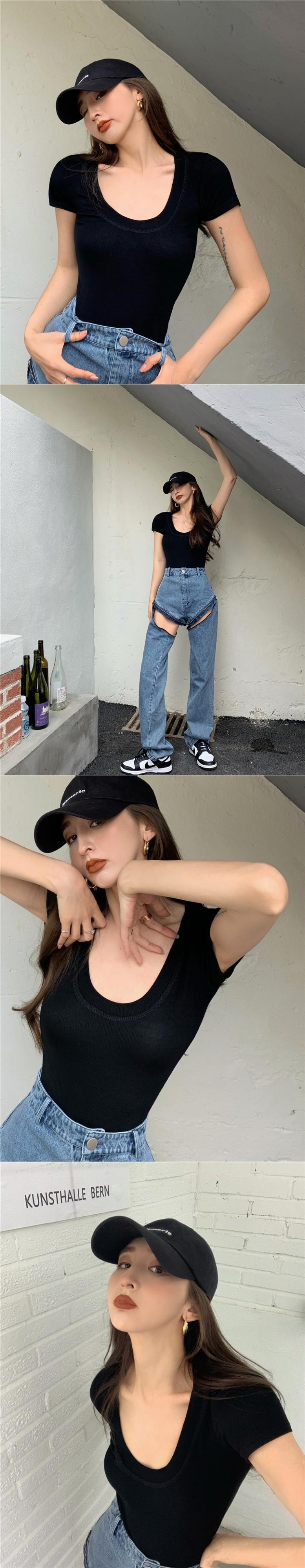 ベーシックTシャツシャツ ゆったり夏服ブラックトップス 夏物 YY69733263240