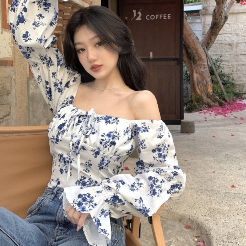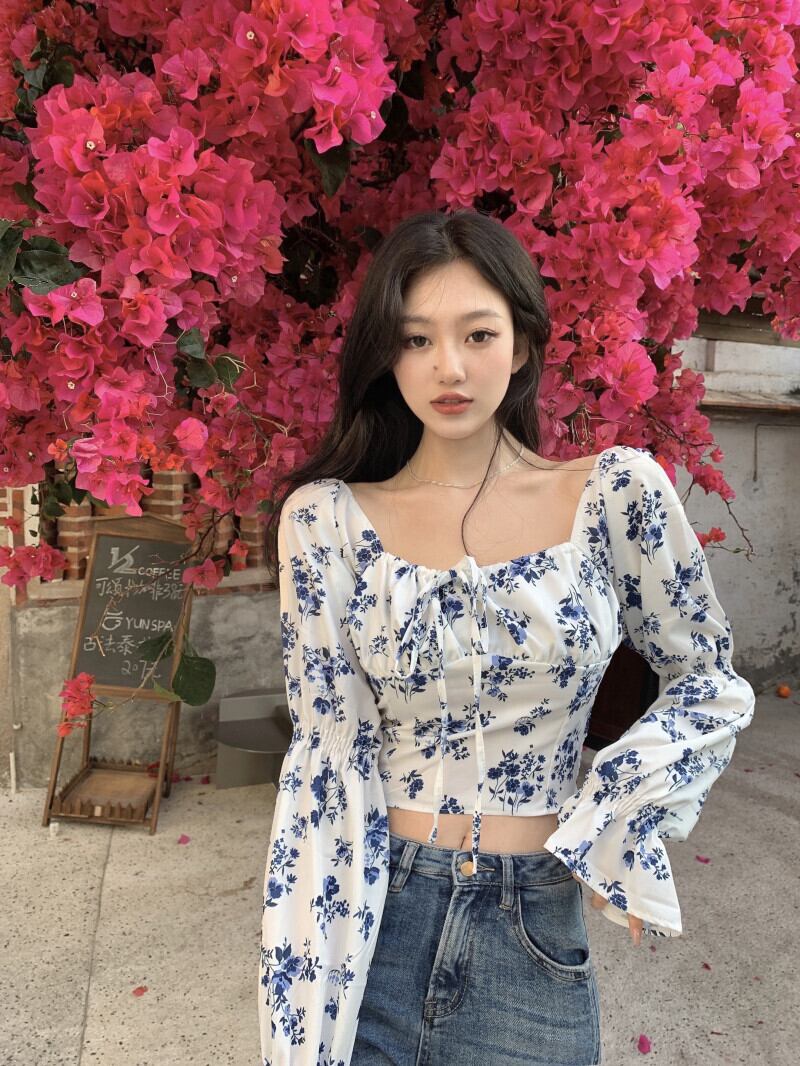シャツ ショートフローラル夏服スタンダードカラートップス ロング レトロ 夏物 花柄 スクウェア 長袖 YY48321160724
