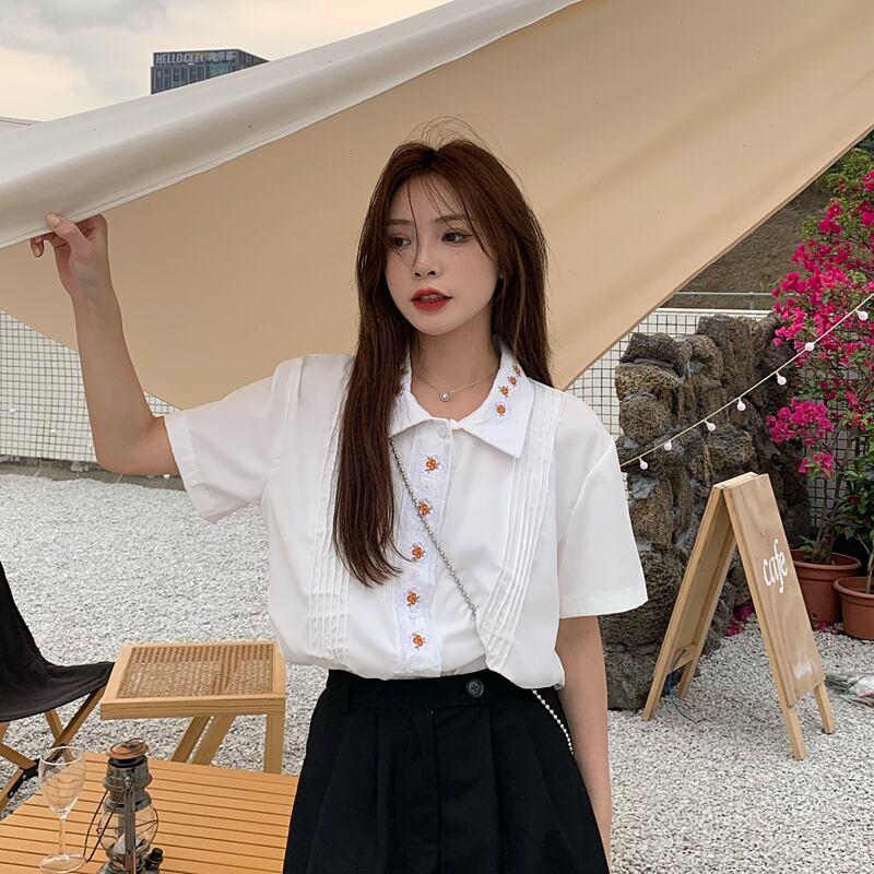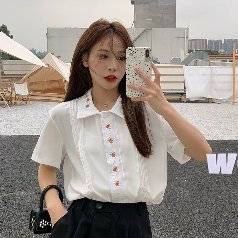 夏服刺繍スタンダードスタイルホワイトシャツ トップス レトロ 夏物 フラワーデザイン YY21224252363