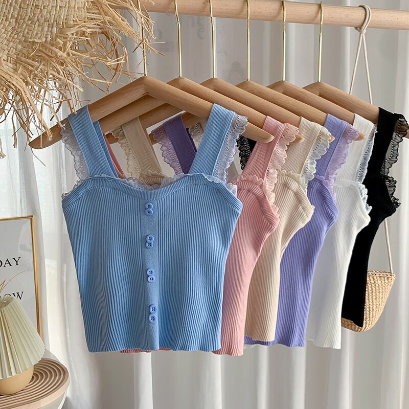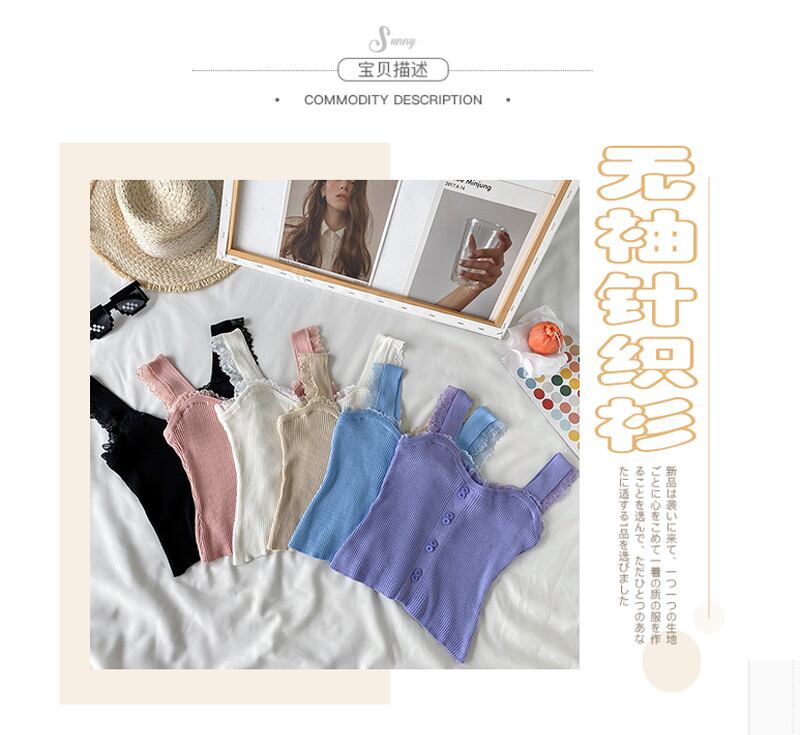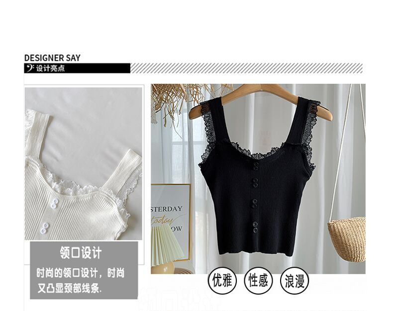 韓国ファッション夏服レースソリッド カラーショートニットスリムブラウス 夏物 ソリッドカラー スタイル YY68625846381