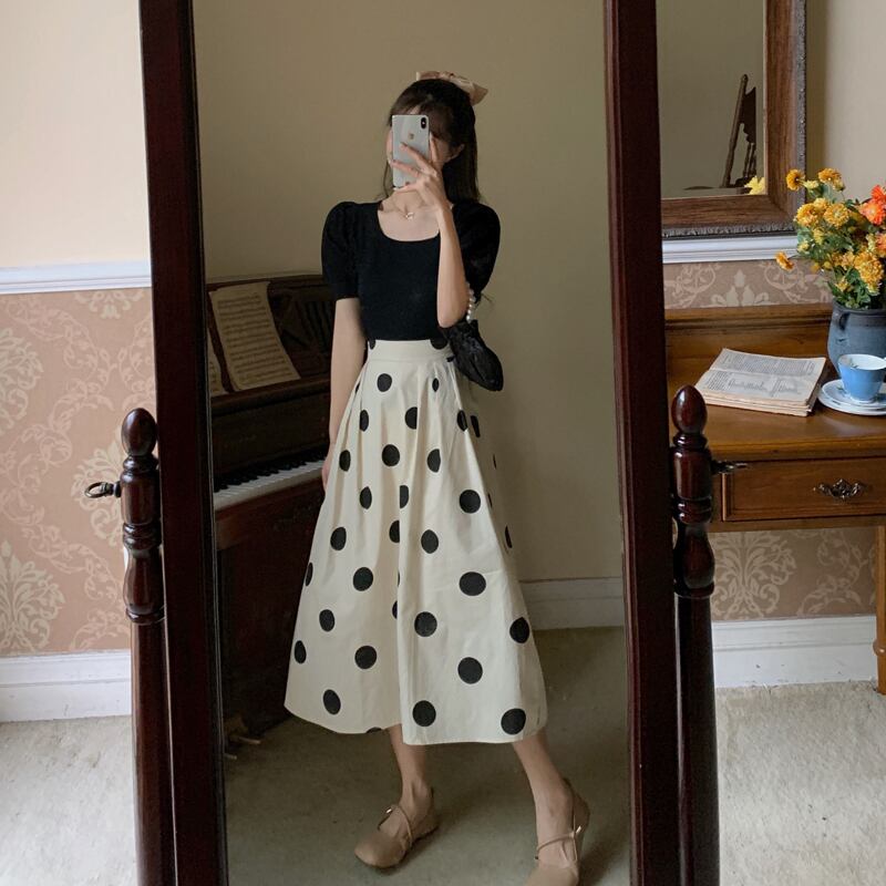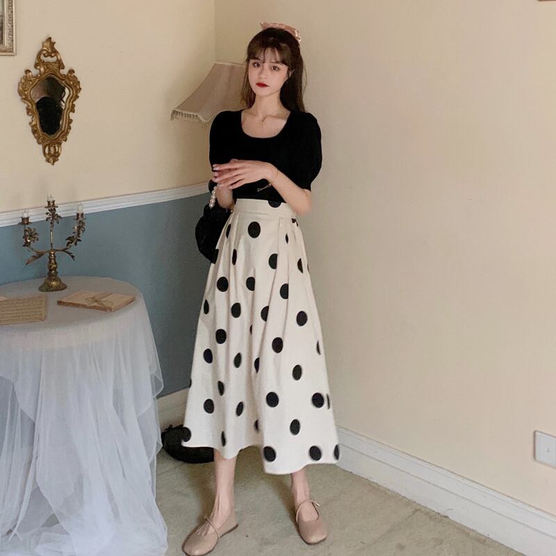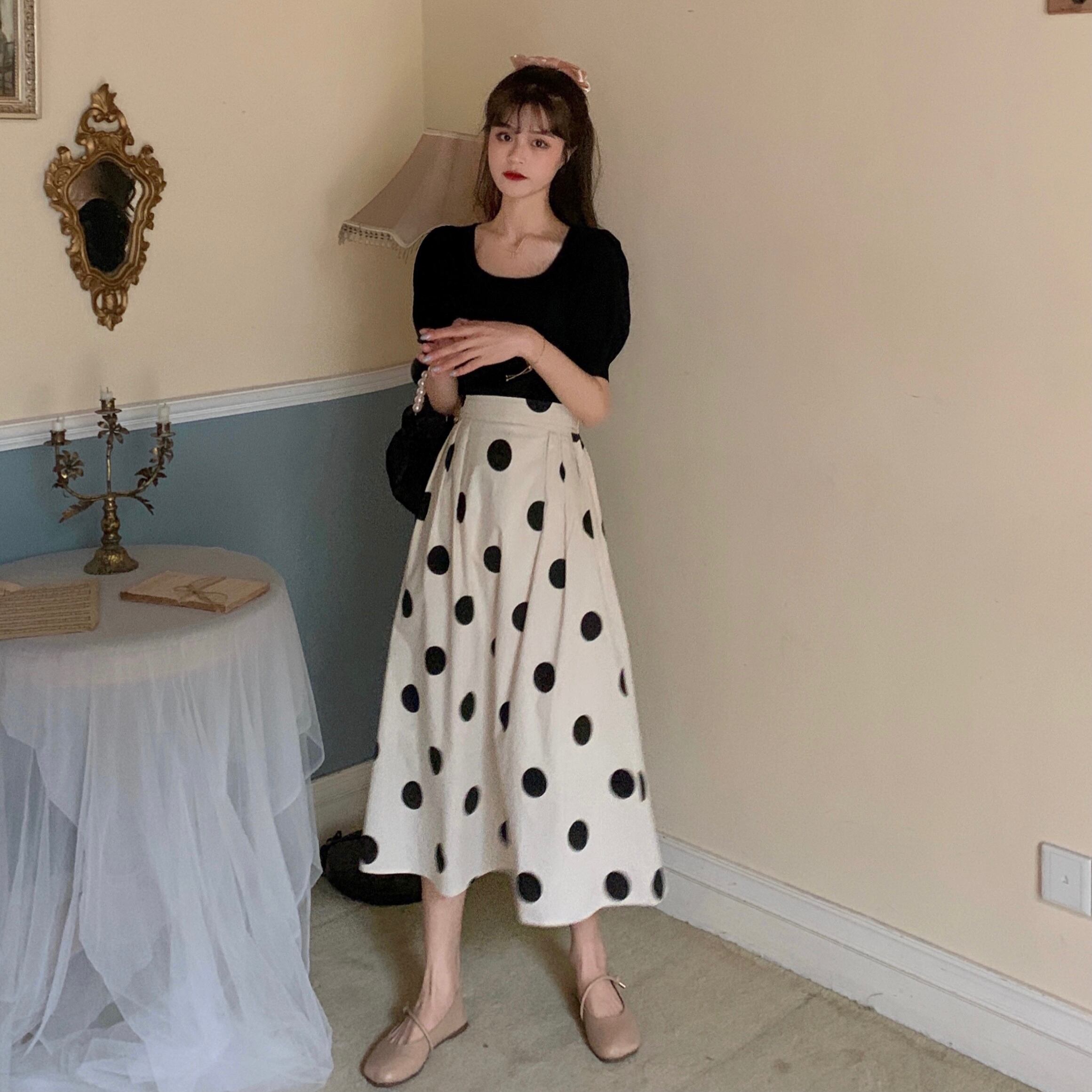 水玉スカート レディース夏服Aラインハイウェストウェスト薄手ロング 夏物 ウエスト ミドル丈 SYJ47211642078