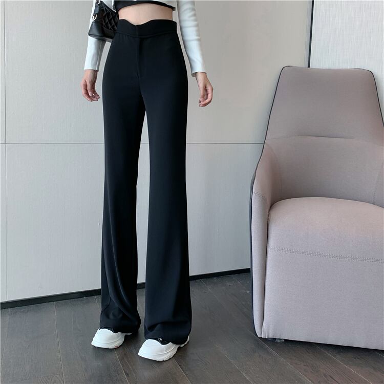 パンツ 夏服ワイドレッグ薄手ルーズハイウェストウェストカジュアルブラック レッド 夏物 ワイドパンツ ウエスト YY25439713185