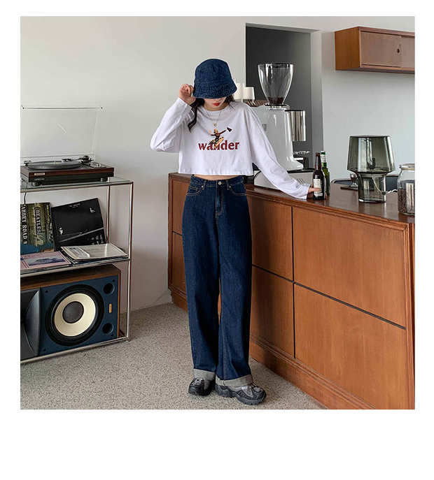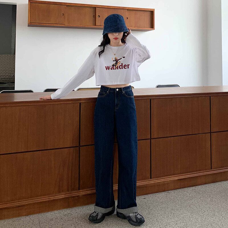 ダークジーンズ 秋物ルーズパンツ ハイウェスト オータム ウエスト MONROE93684899620