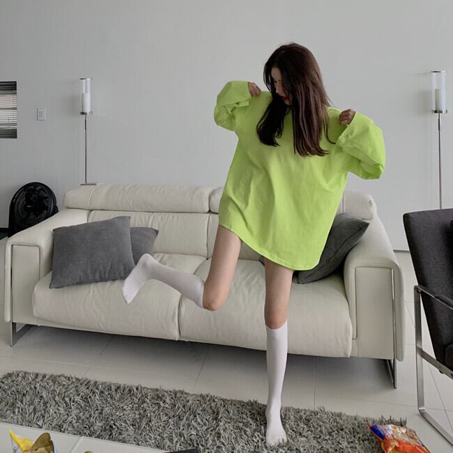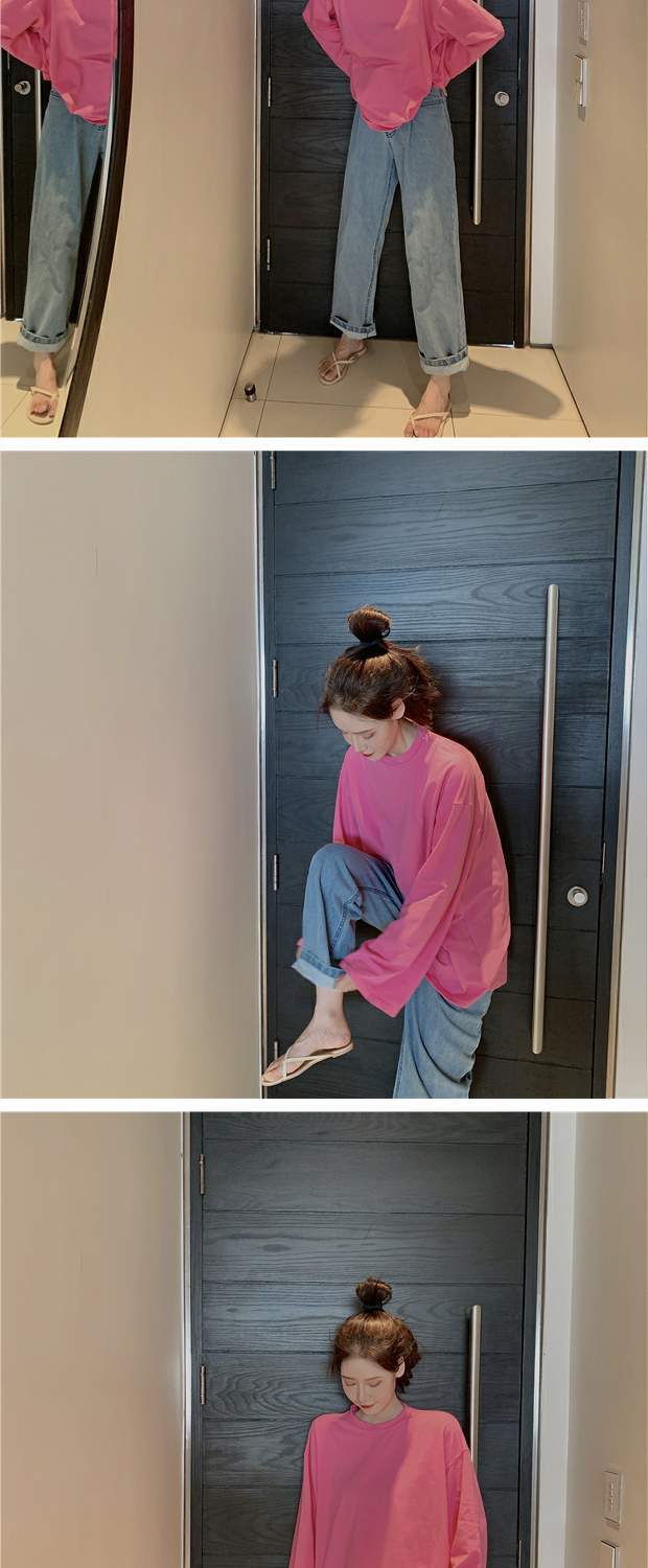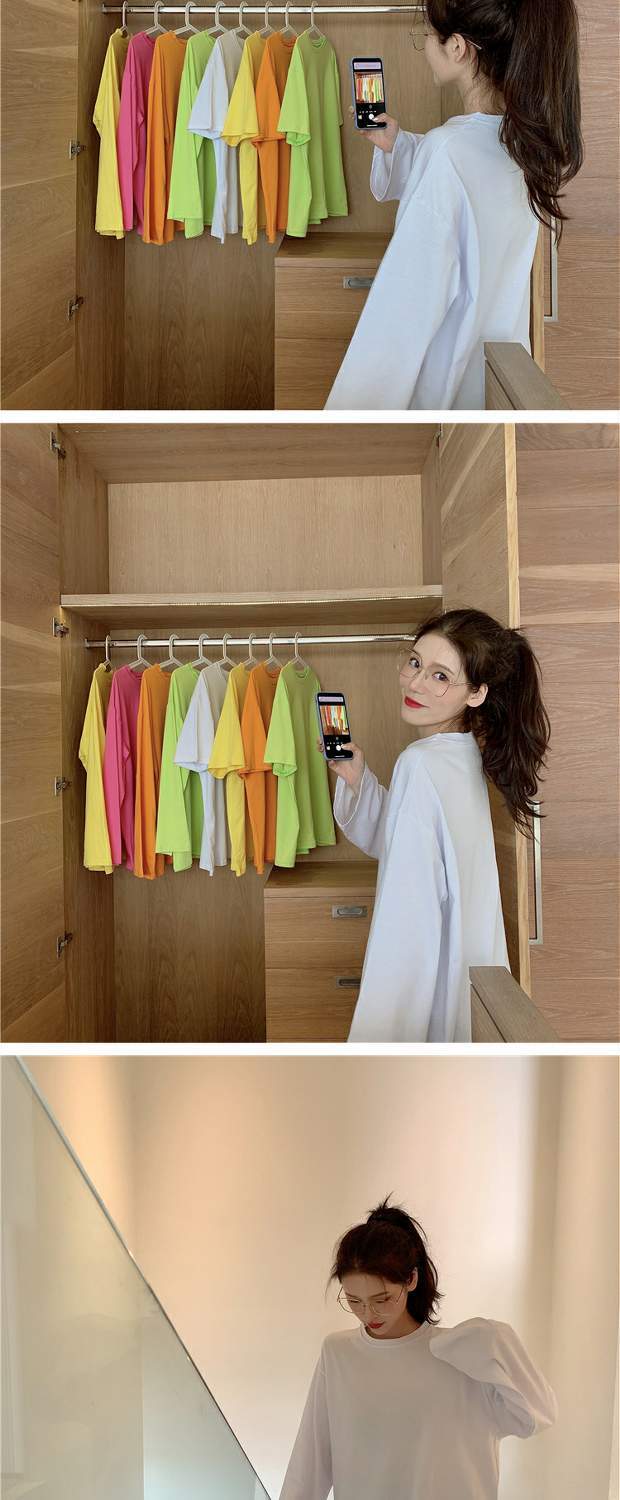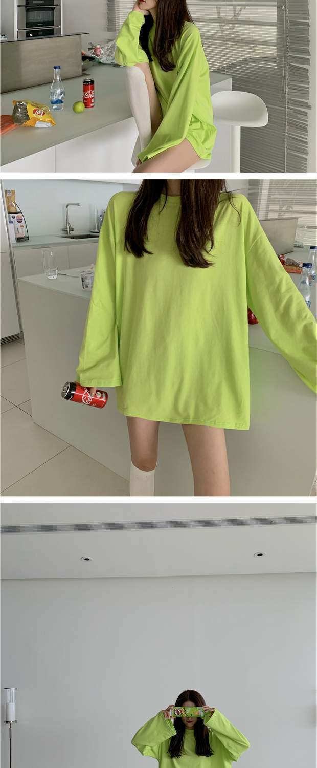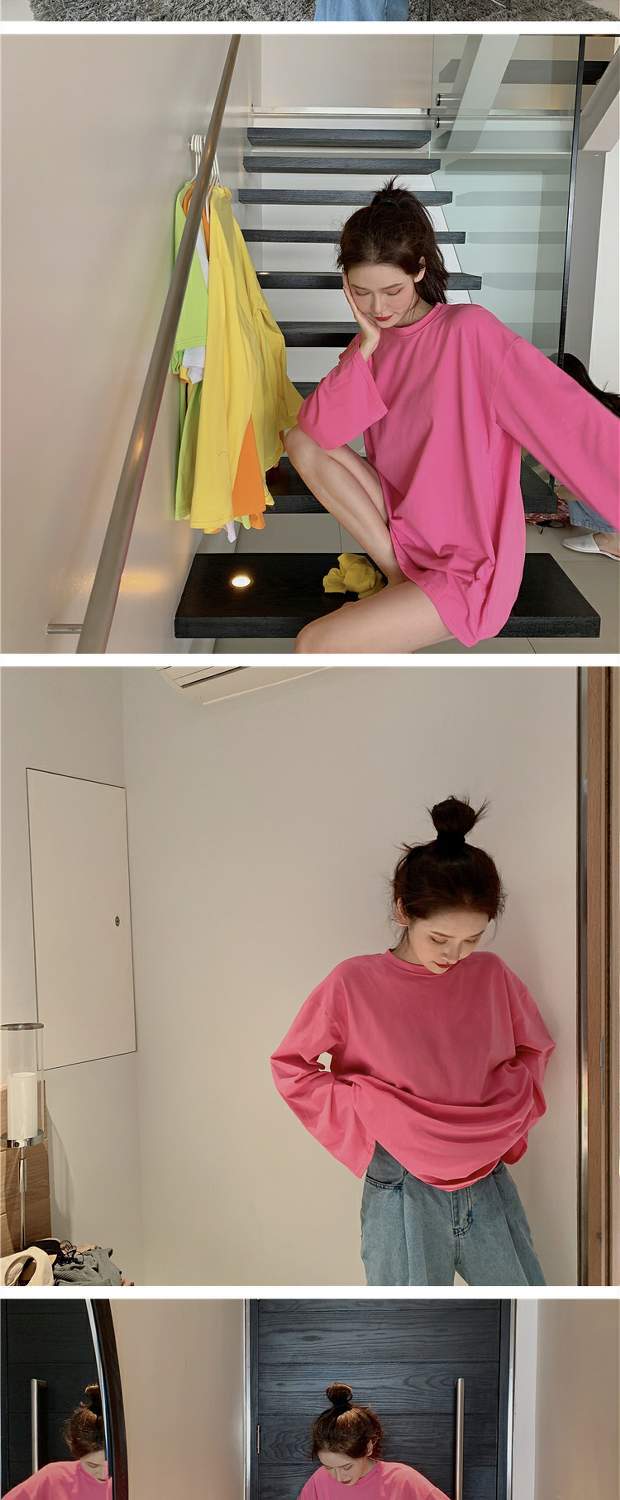 スプリング韓国ファッションカラーTシャツシャツ ルーズ薄手カジュアルトップス ゆったり ロング 春物 スタイル 長袖 MONROE5998975