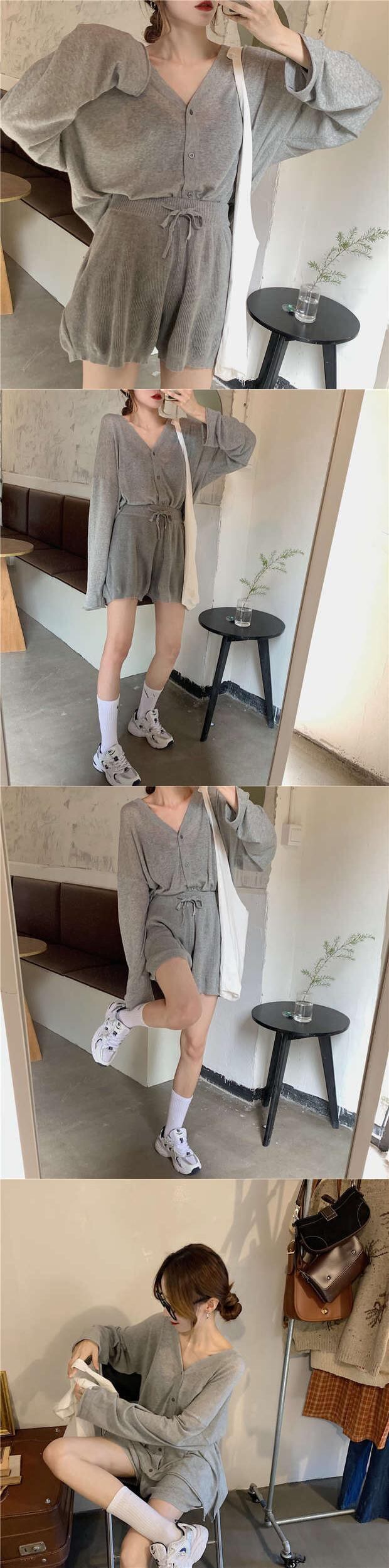 秋物ルーズVネックセーター コート ショーツ ロング オータム 長袖 MONROE39512349140