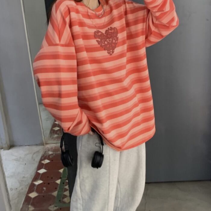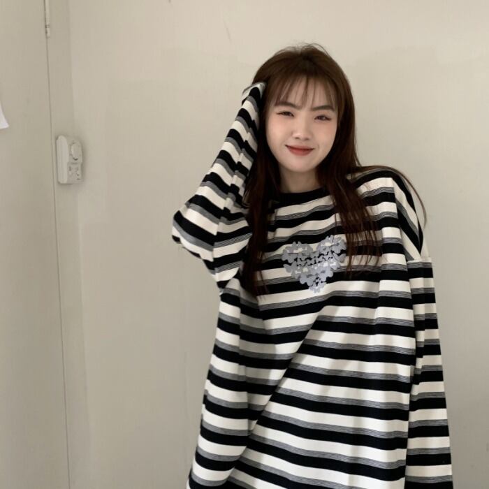 ストライプTシャツシャツ ルーズトップス スプリングゆったり ロング 春物 長袖 ミドル丈 MONROE72617711249