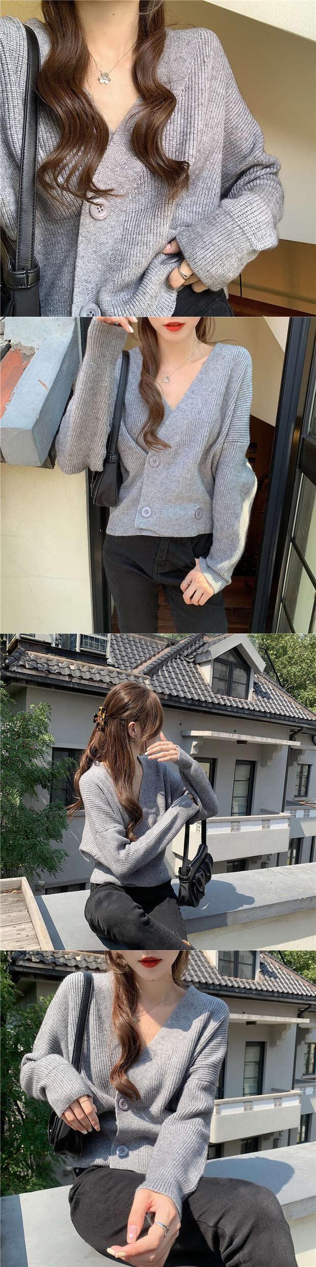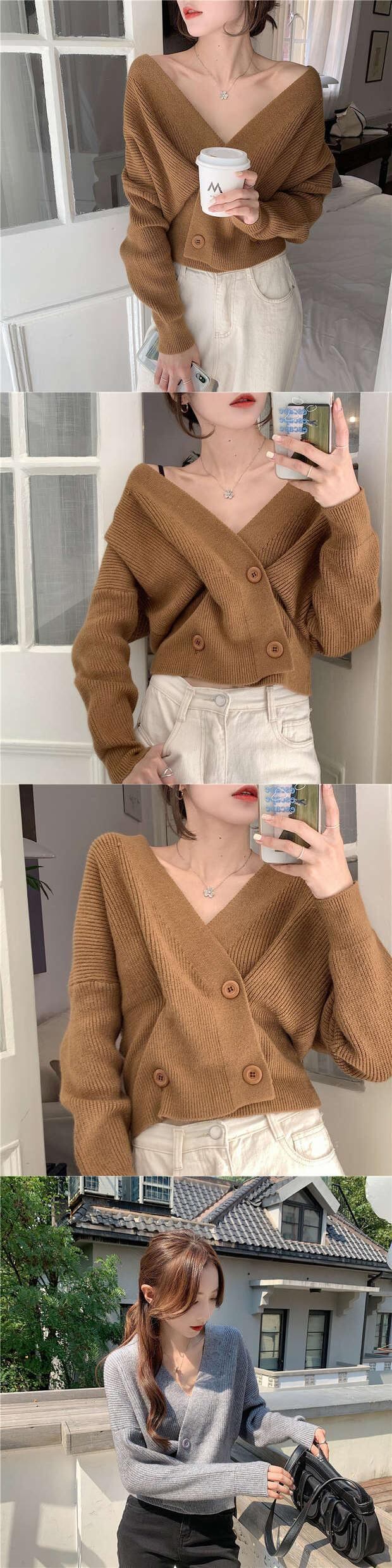 Vネックニットカーディガンセーター コート 秋物ルーズプルオーバー トップス ロング オータム 長袖 MONROE82623463430