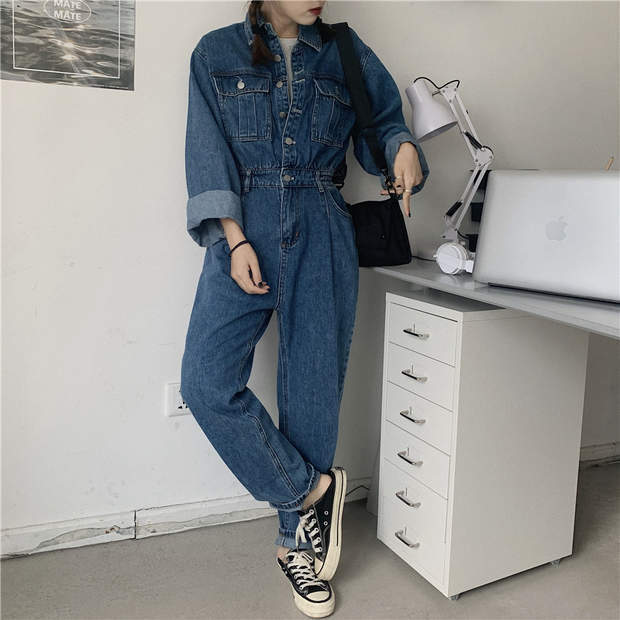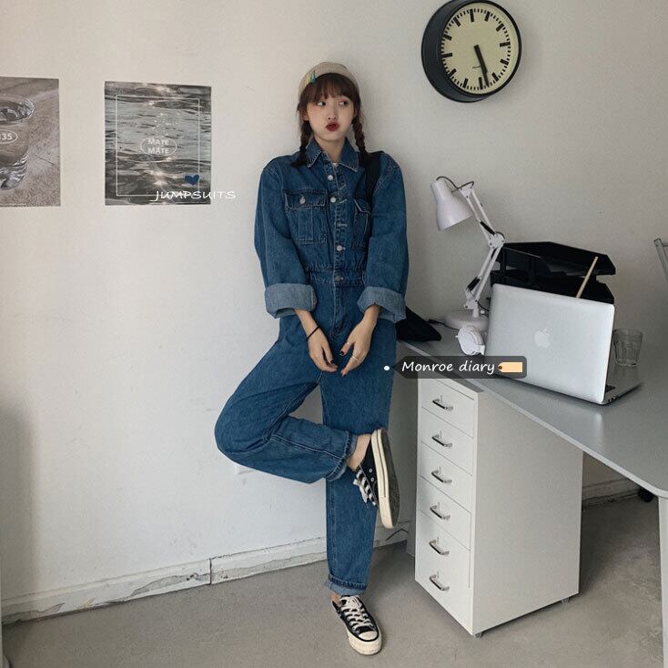 スタンダードジーンズ ジャンプスーツ オールインワン 秋物ルーズパンツ ハイウェスト レトロ オータム ウエスト MONROE24338322756