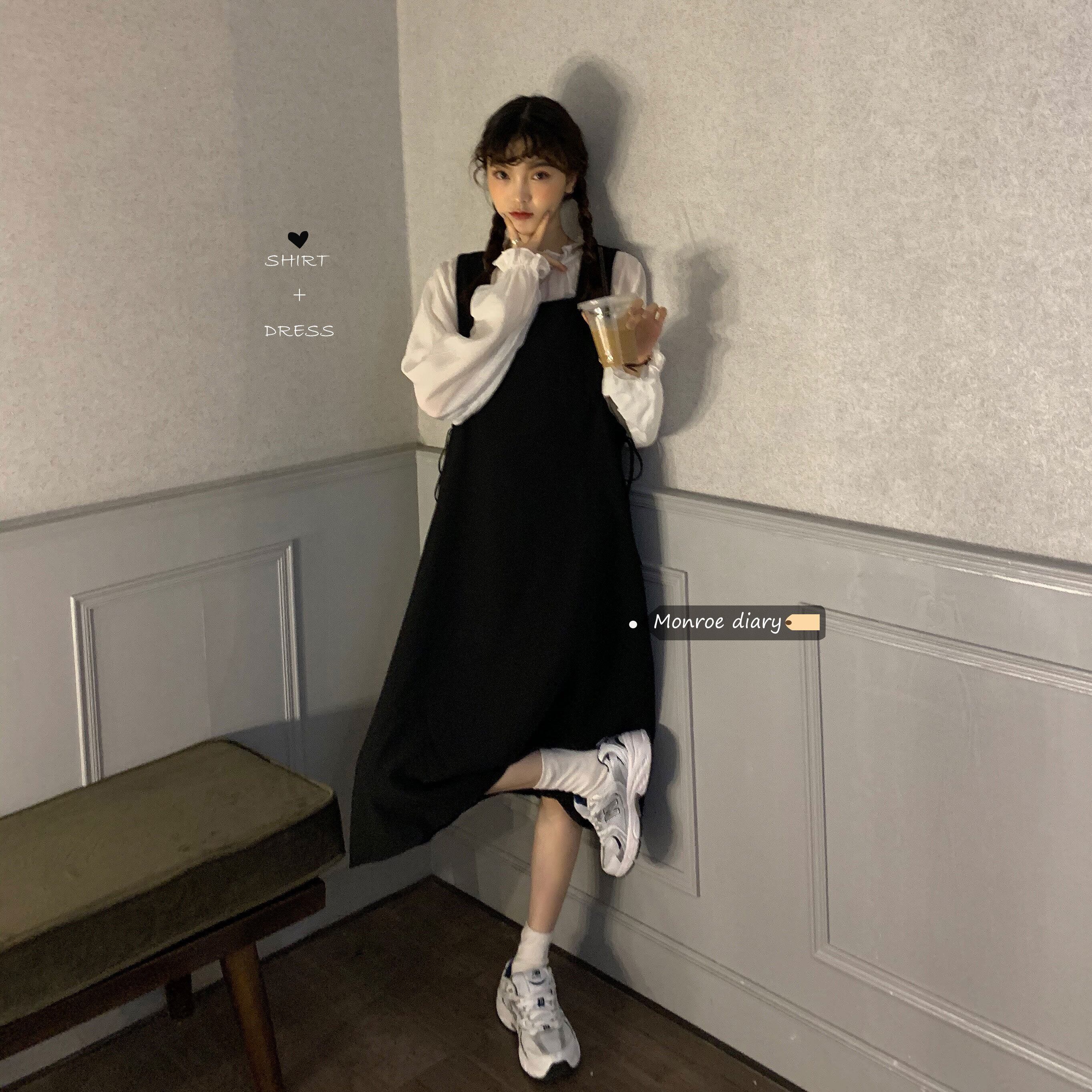 ブラックスカート スプリングルーズギャザーワンピースハイウェストウェスト 春物 ウエスト ミドル丈 MONROE51428400026
