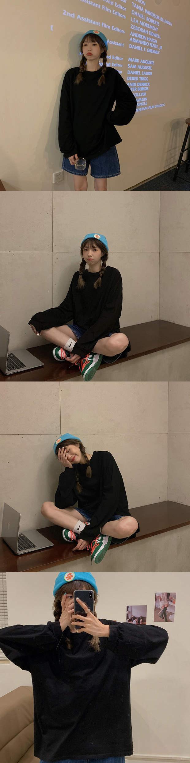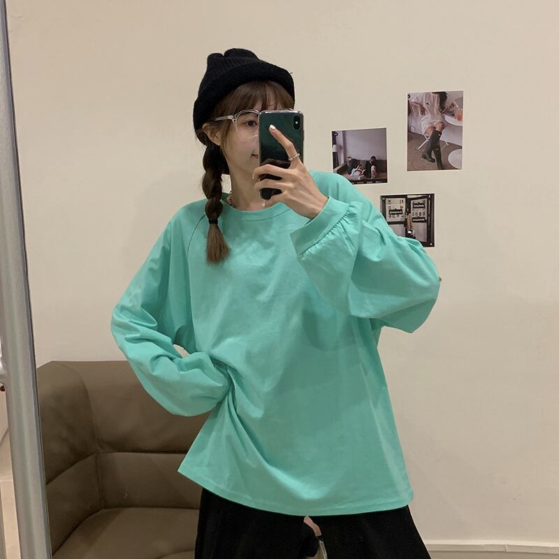 ソリッド カラーベーシックゆったりシャツ Tシャツスプリング韓国ファッションルーズトレンドブルートップス ロング 春物 ソリッドカラー スタイル 長袖 MONROE37193714101