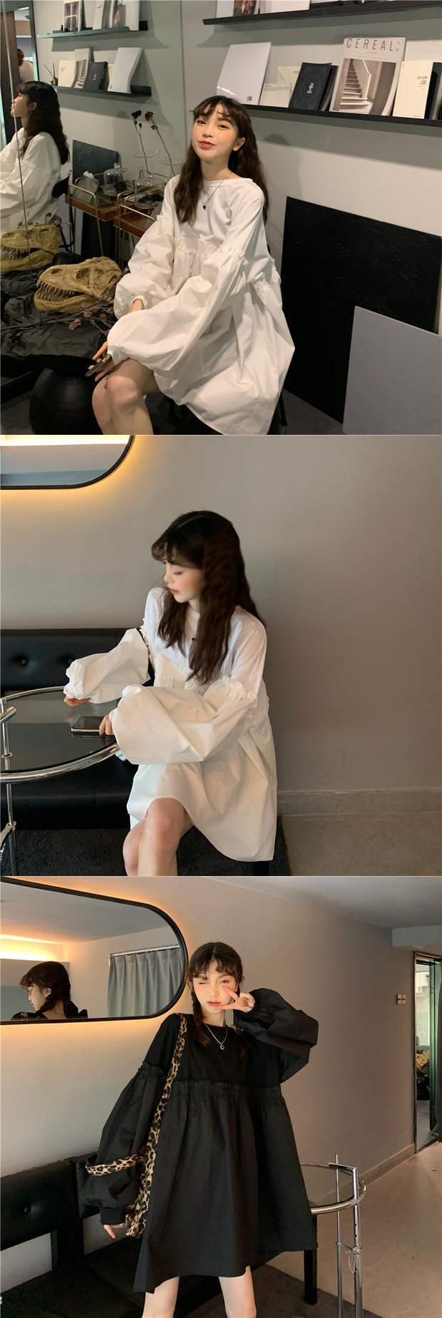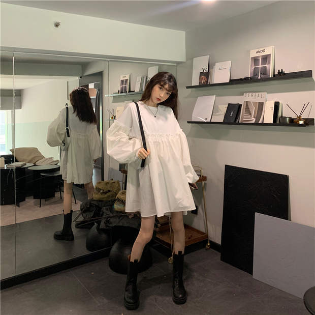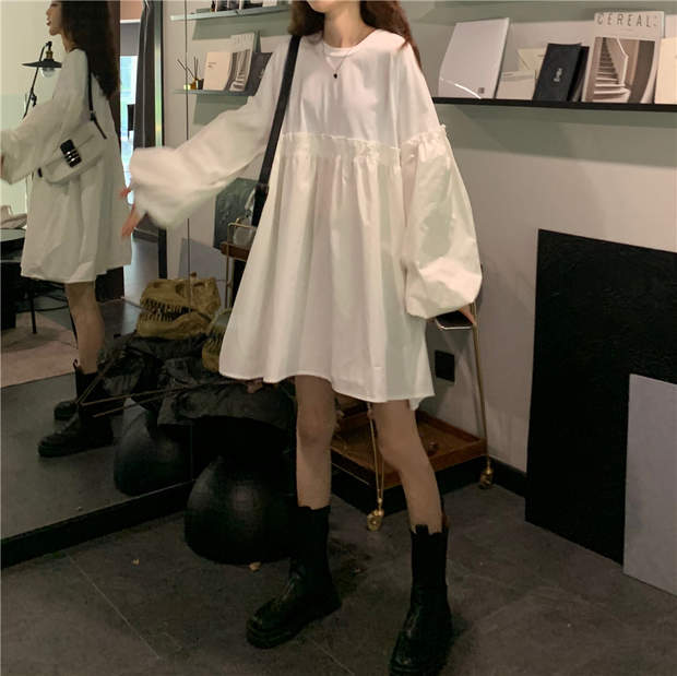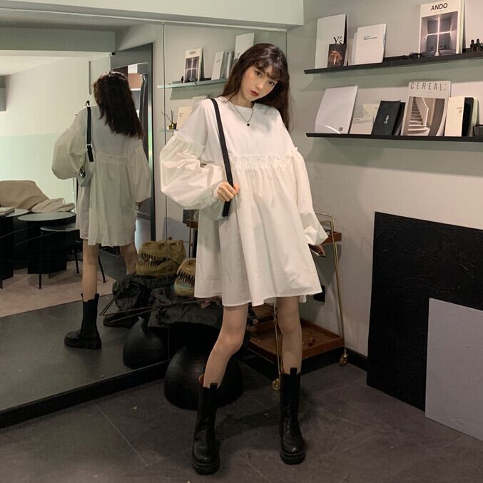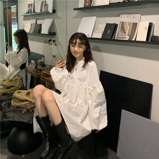 ホワイトワンピースルーズ長袖スリーブスプリングウェストスカート ロング 春物 ウエスト ミドル丈 MONROE64264787620