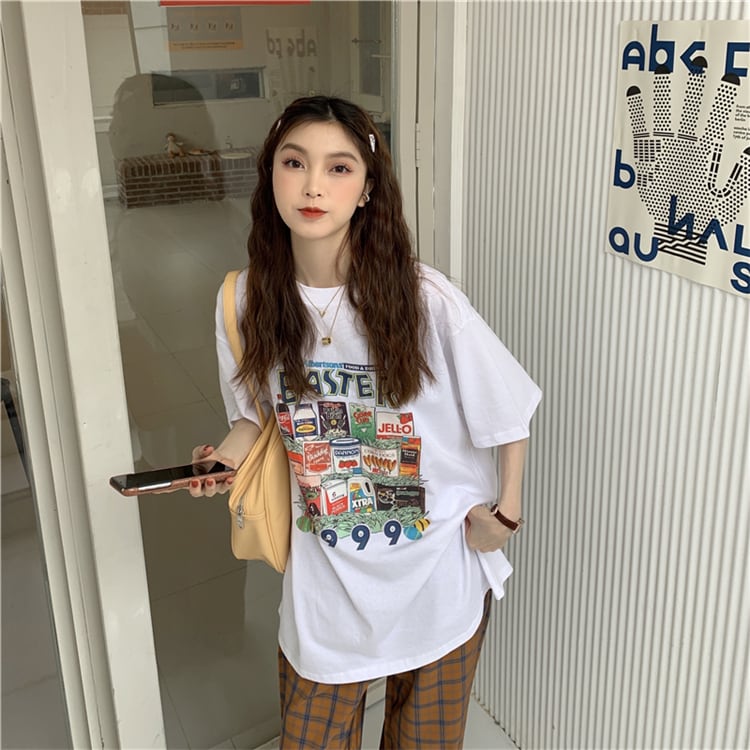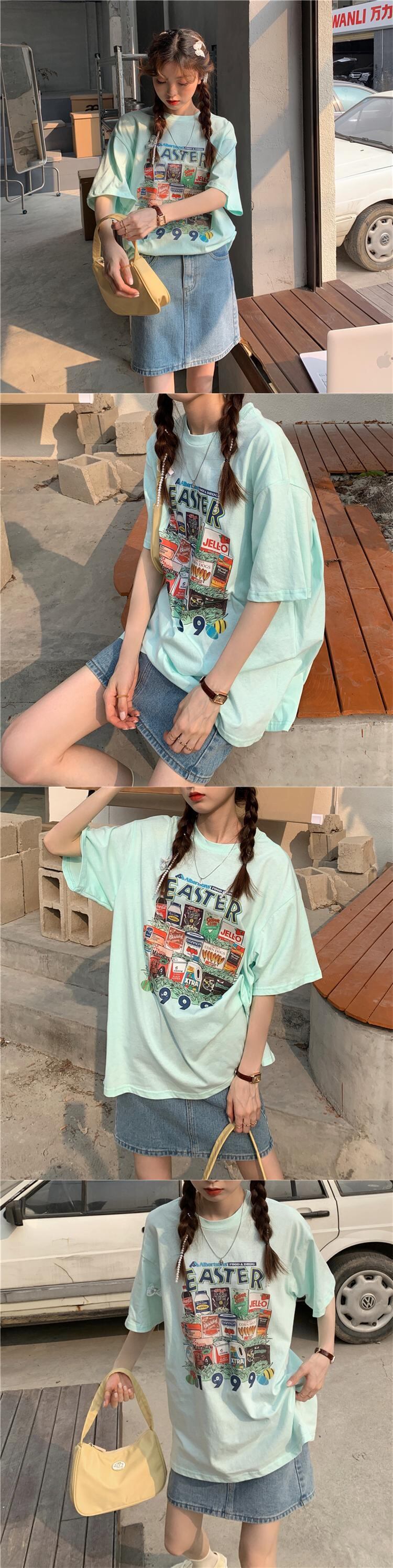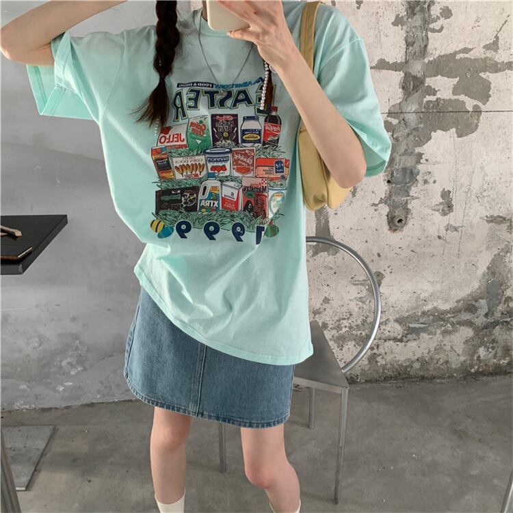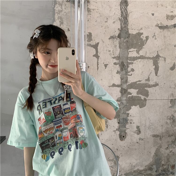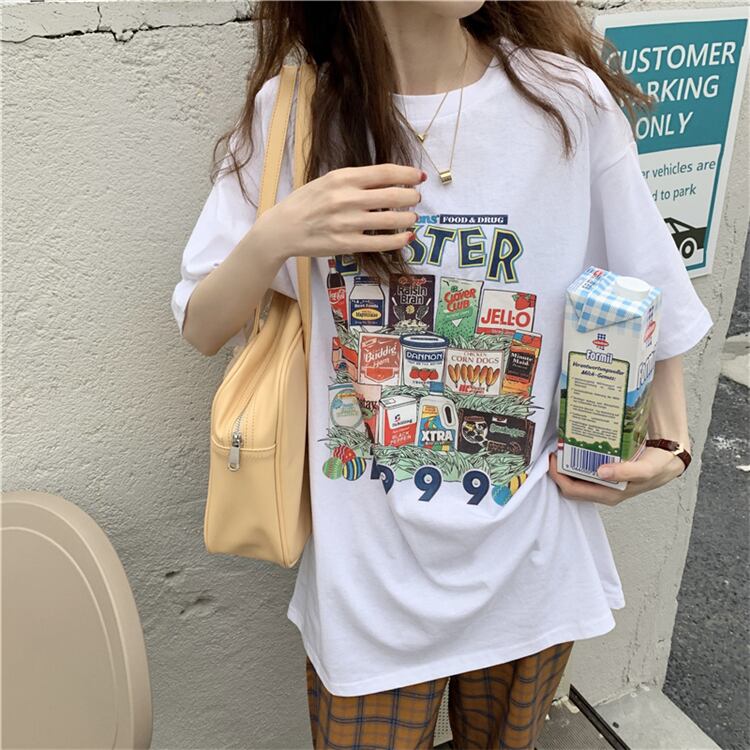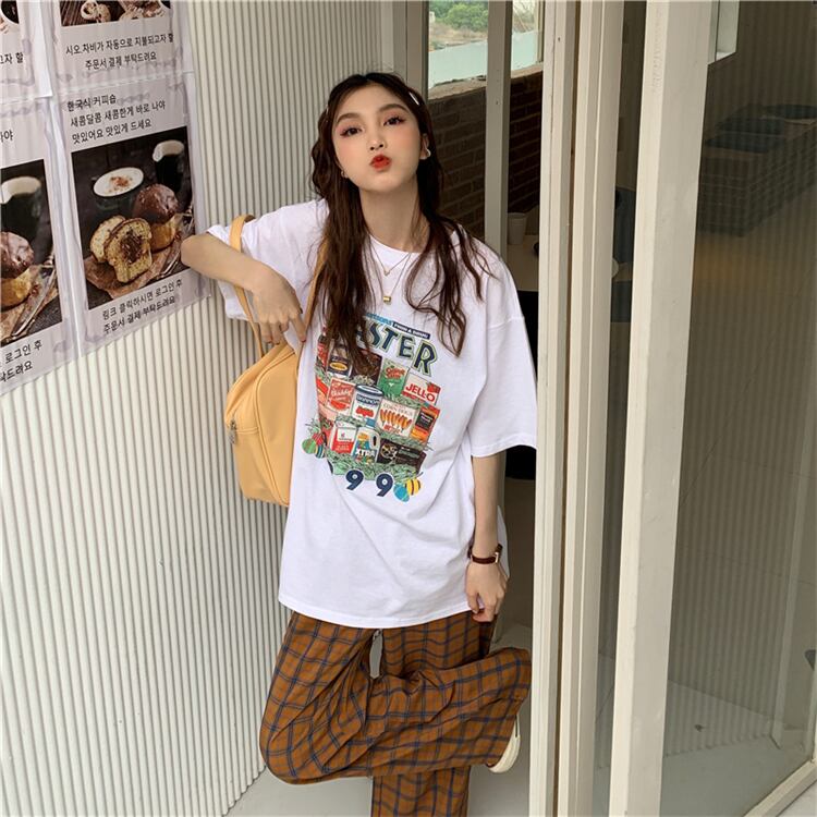ホワイトTシャツシャツ レディース夏服韓国ファッションルーズゆったり コットン 夏物 スタイル ミドル丈 MONROE96583355273