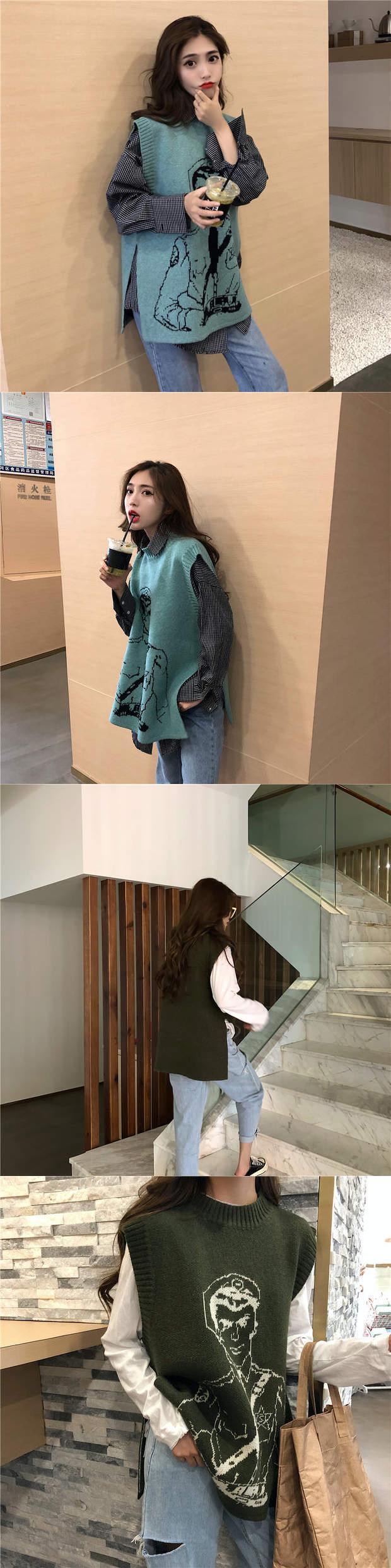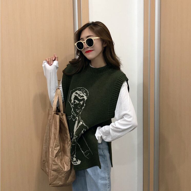 スタンダードニット秋物韓国ファッションルーズノースリーブセーター ジャケット レトロ オータム スタイル MONROE56284336342