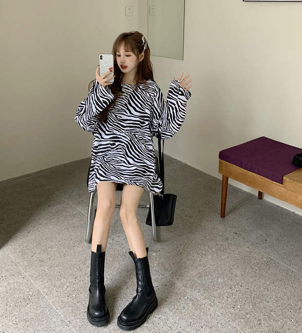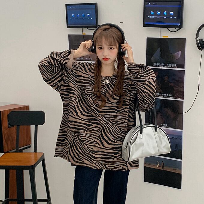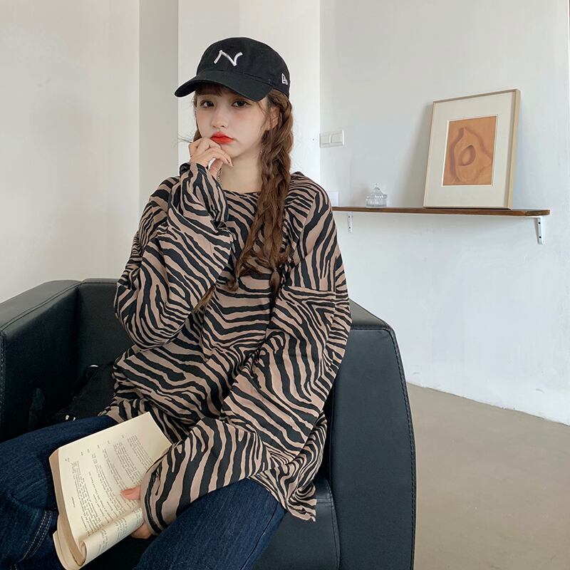 トレンドストライプTシャツ秋物ルーズ薄手トップス ロング オータム 長袖 ミドル丈 MONROE71588268005