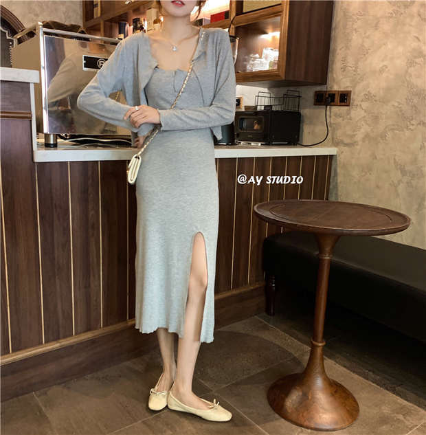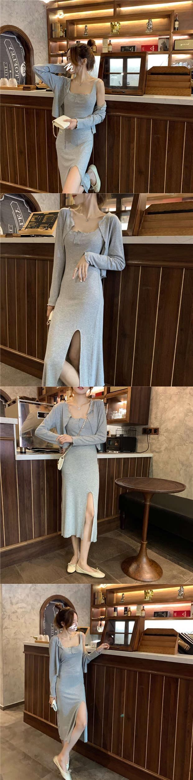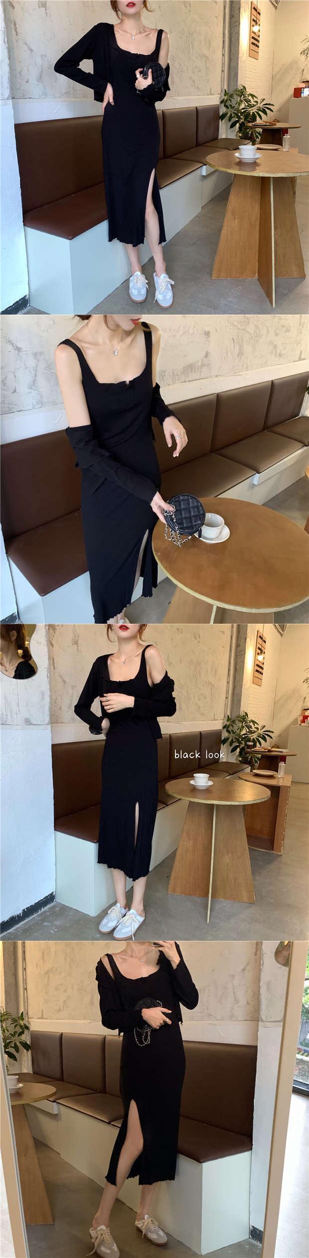 ワンピース秋物韓国ファッションスリムフィットブラックハイウェストウェスト薄手スカート オータム スタイル ウエスト MONROE84168025797