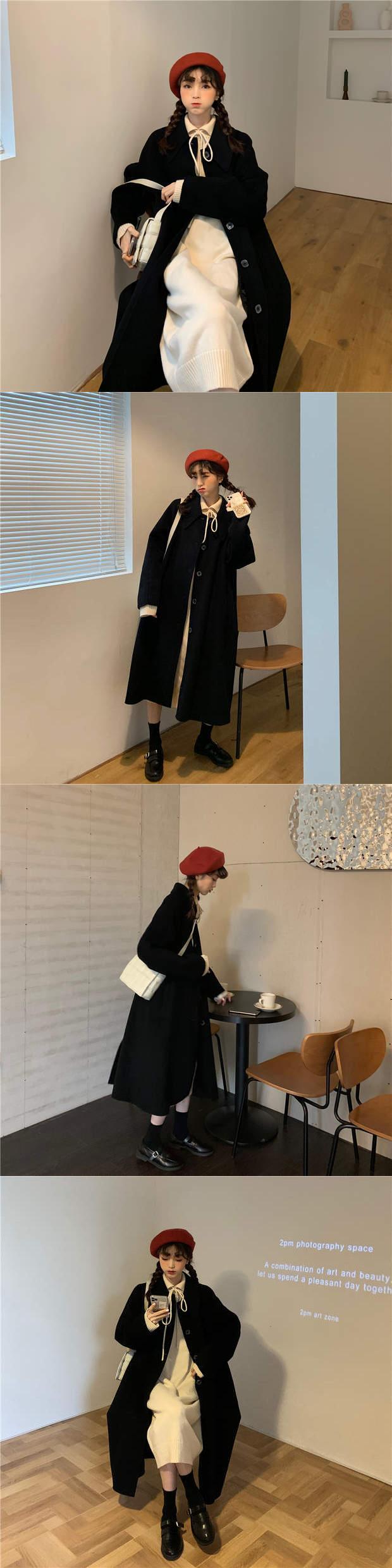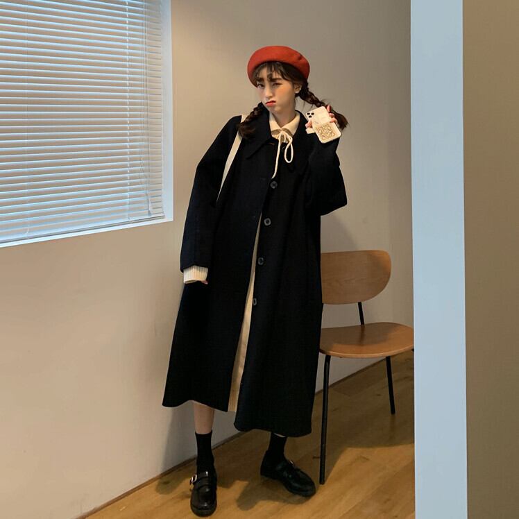 ルーズブラックコート スプリングウィンター ロング 春物 冬物 長袖 ミドル丈 MONROE85054228882