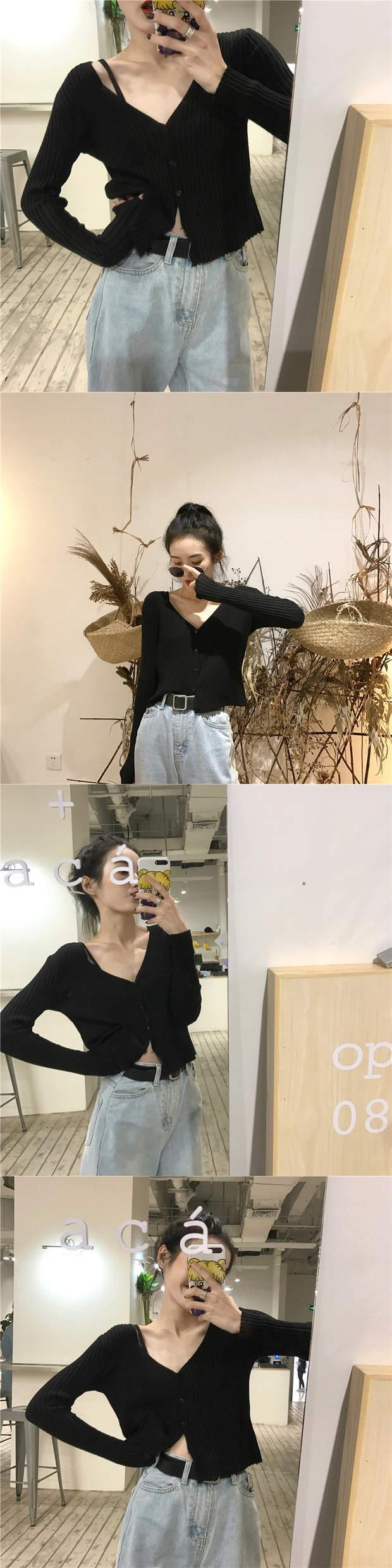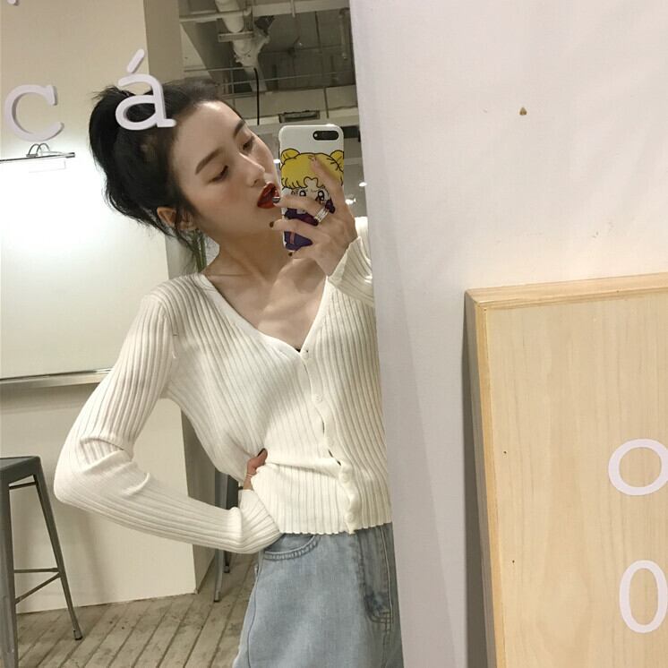 秋物韓国ファッショントレンドスタイルVネックセーター カジュアルショートトップス コート レディース ロング オータム 長袖 MONROE4791376