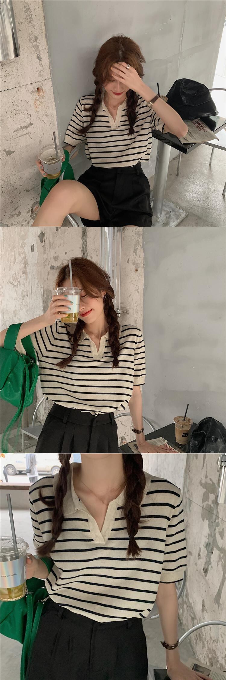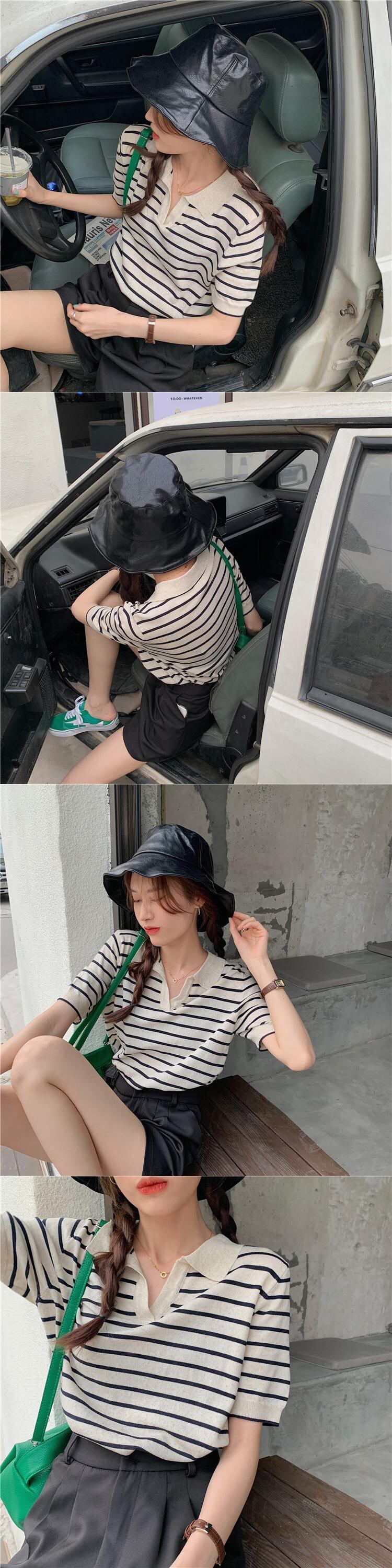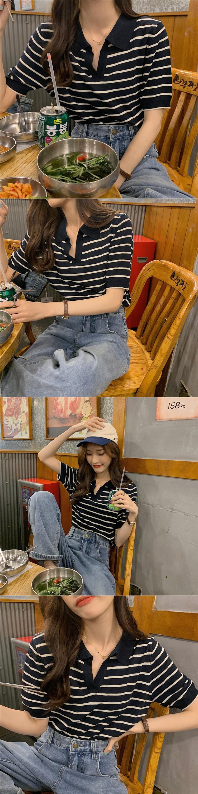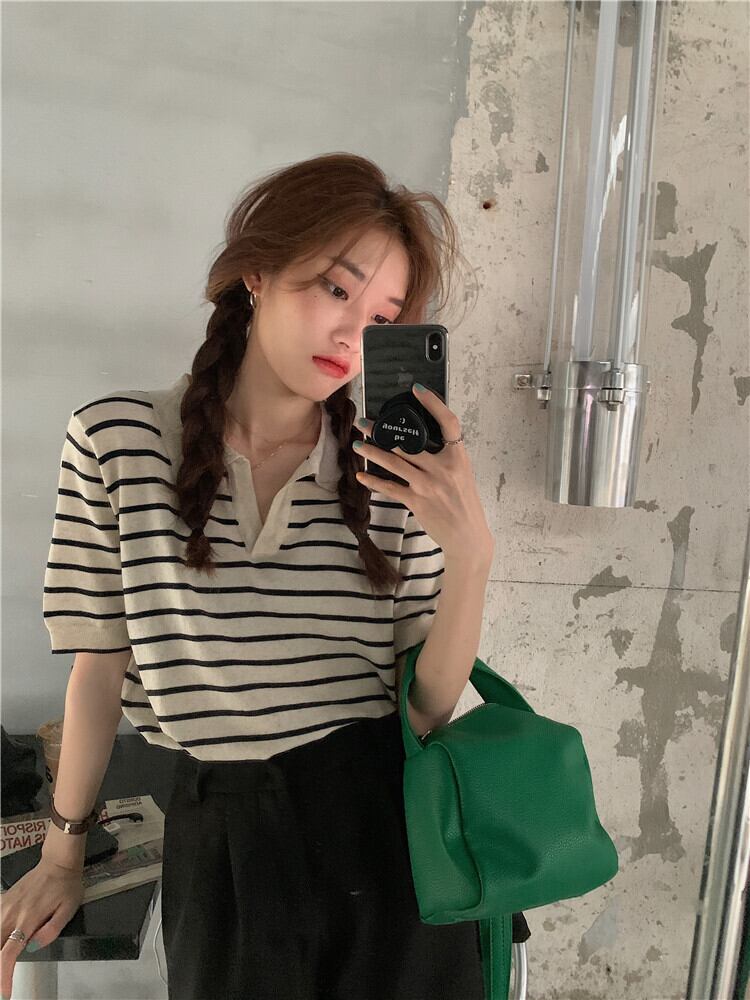 韓国ファッションスタイル薄手ストライプセーター シャツ スプリング夏服ショートトップス 春物 夏物 MONROE10557853941