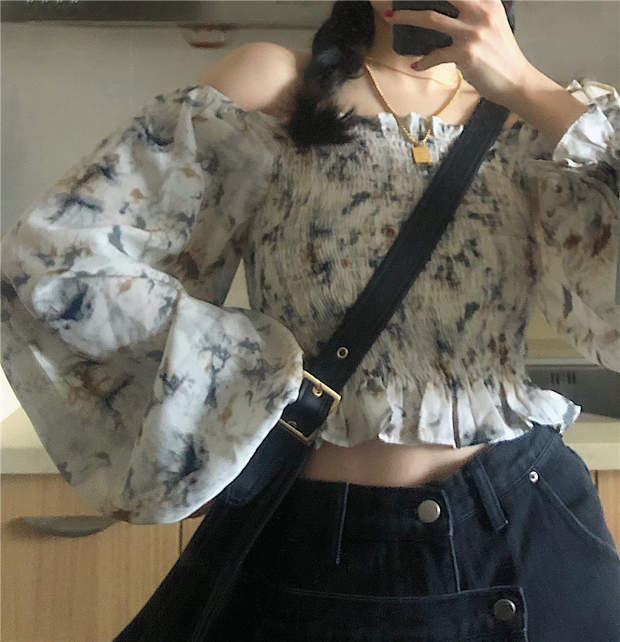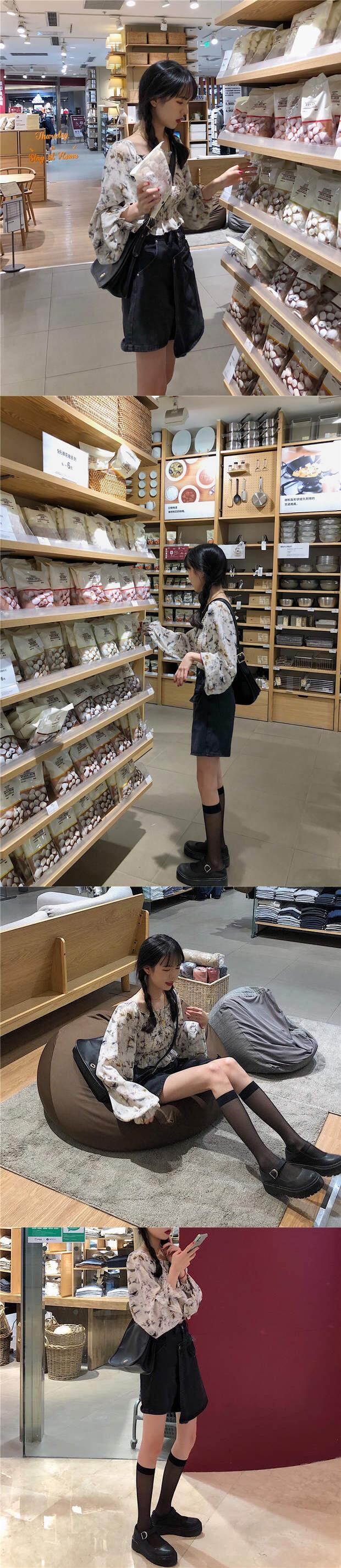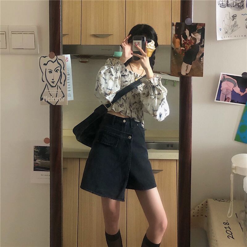 色:アンバーシフォンシャツ,ブラックデニムスカートパンツ