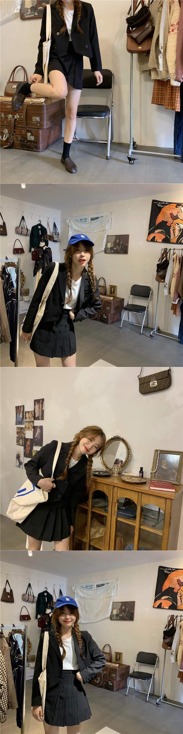色:コーヒージャケット,黒いジャケット,コーヒー色のスカート,黒スカート