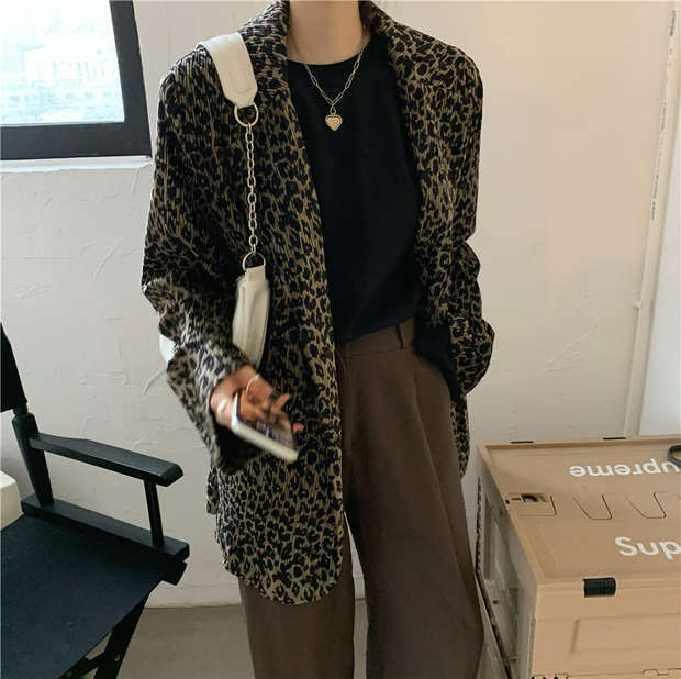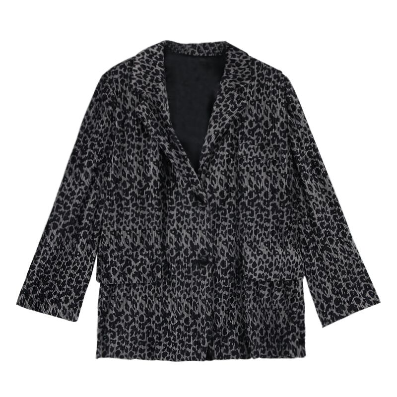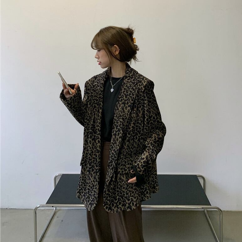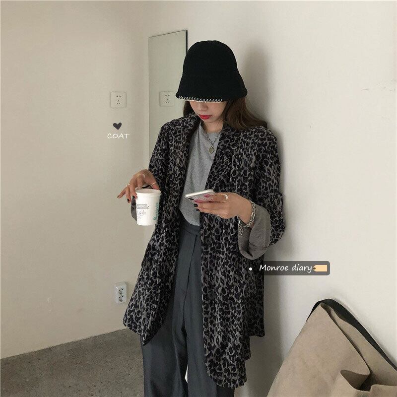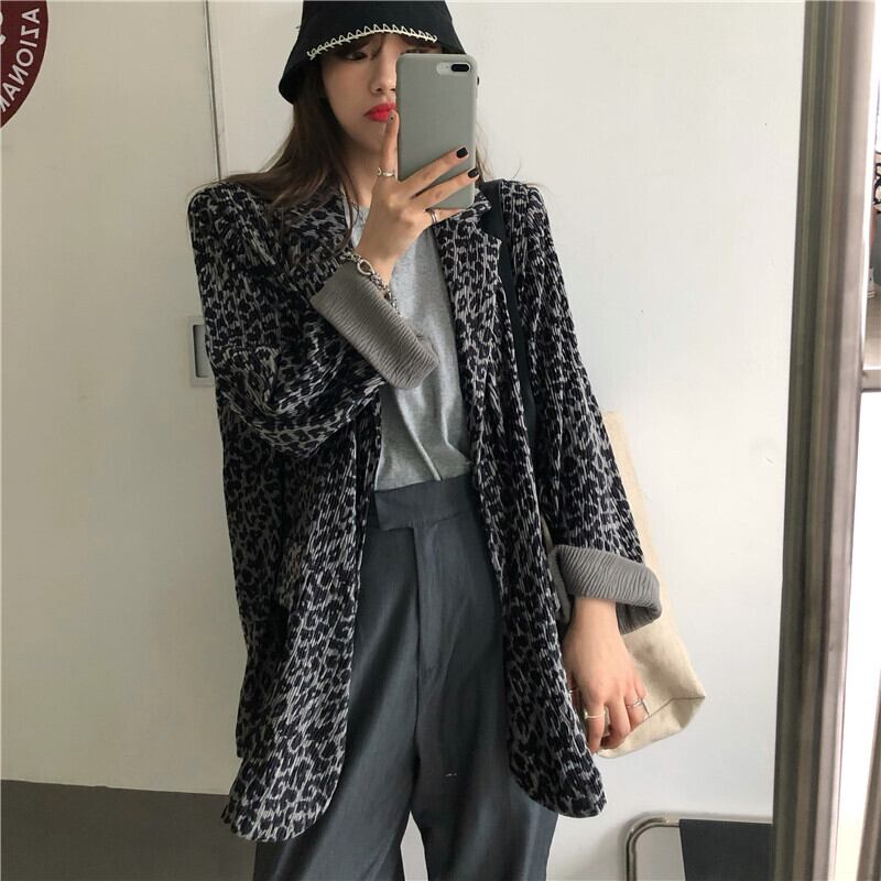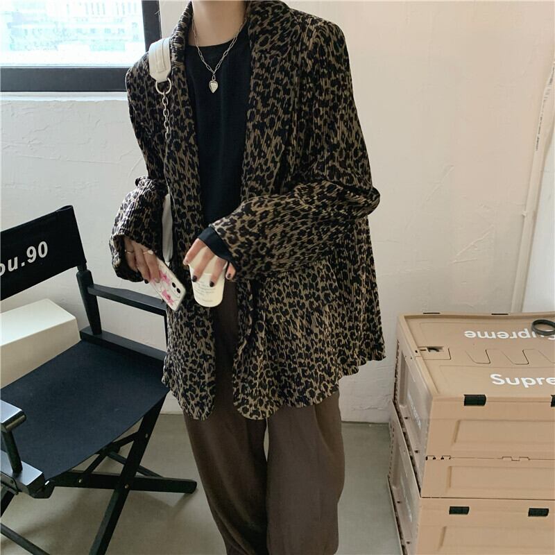 スタイルジャケット 秋物ルーズプリーツレオパードプリント柄トップス ロング ストリート オータム 長袖 MONROE98247488585