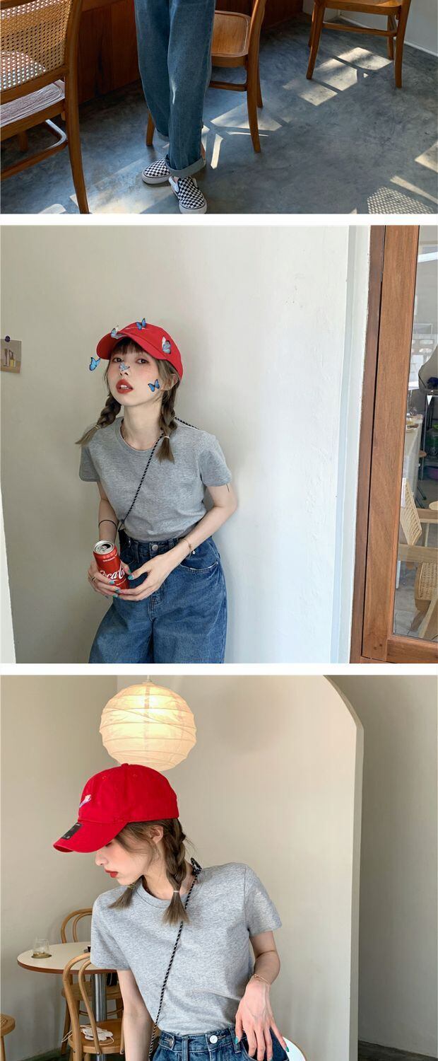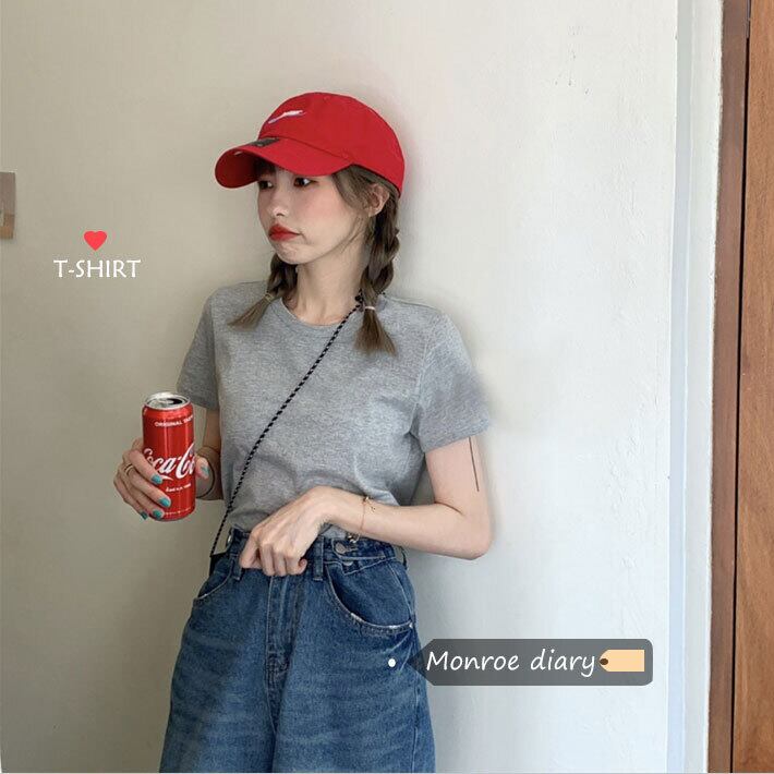 夏服韓国ファッションベーシックソリッド カラーラウンドネックTシャツシャツ ルーズ薄手ゆったりトップス レディース 夏物 Oネック ソリッドカラー スタイル MONROE7390880