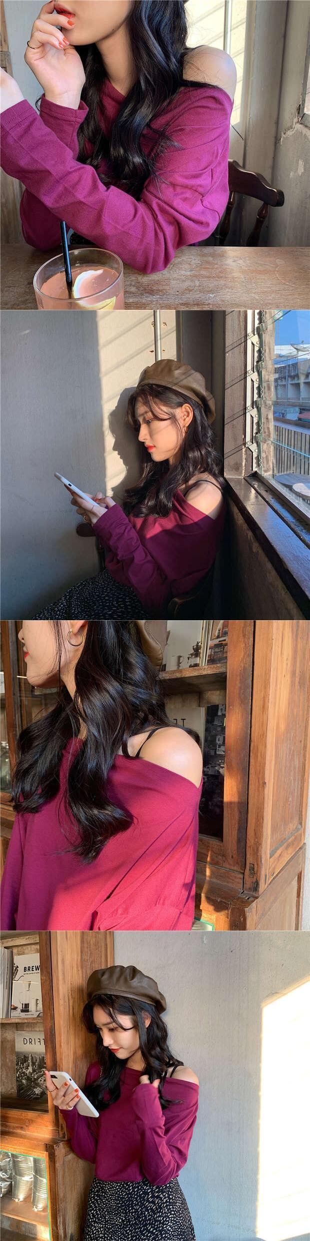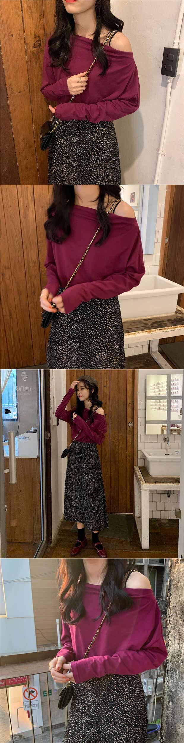 トレンドソリッド カラーゆったりシャツ Tシャツ秋物スリムトップス ロング オータム ソリッドカラー 長袖 ミドル丈 MONROE27070373350