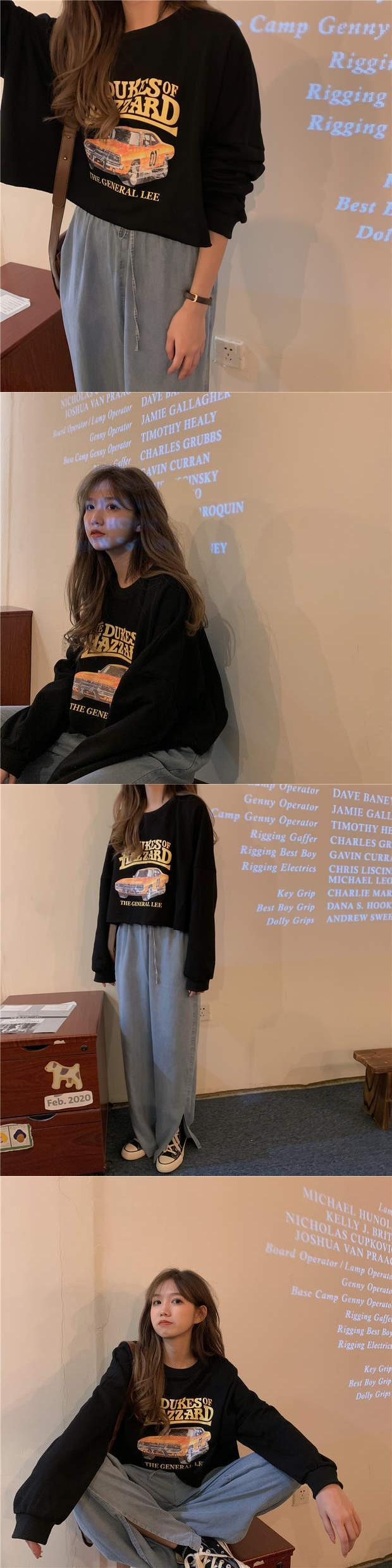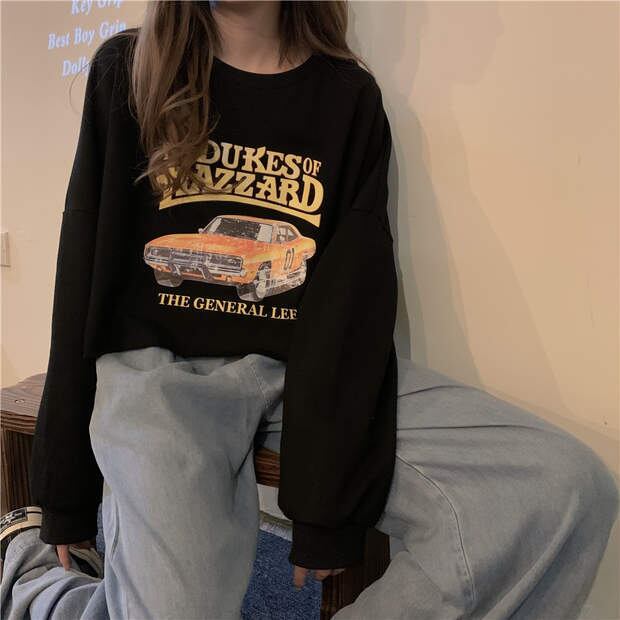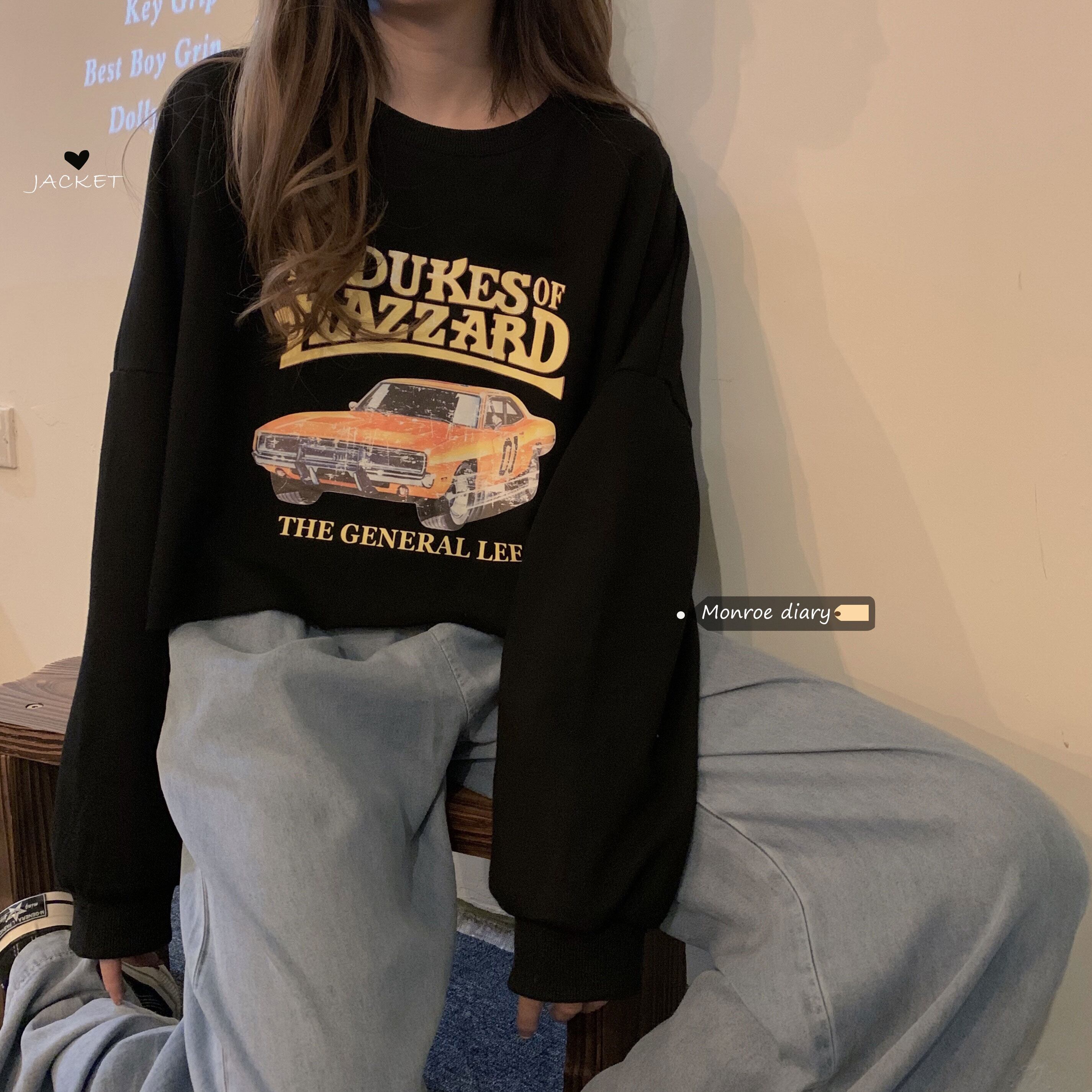 プリント柄ブラックセーター ジャケット 秋物韓国ファッションスタイルルーズトップス オータム ミドル丈 MONROE55092926351
